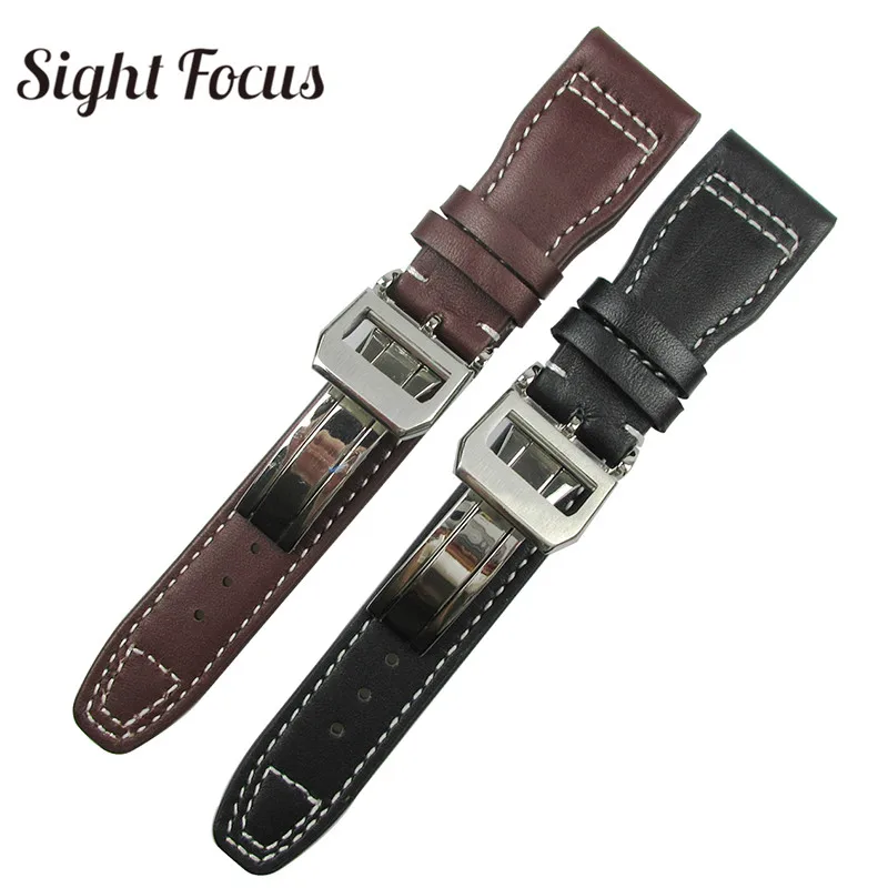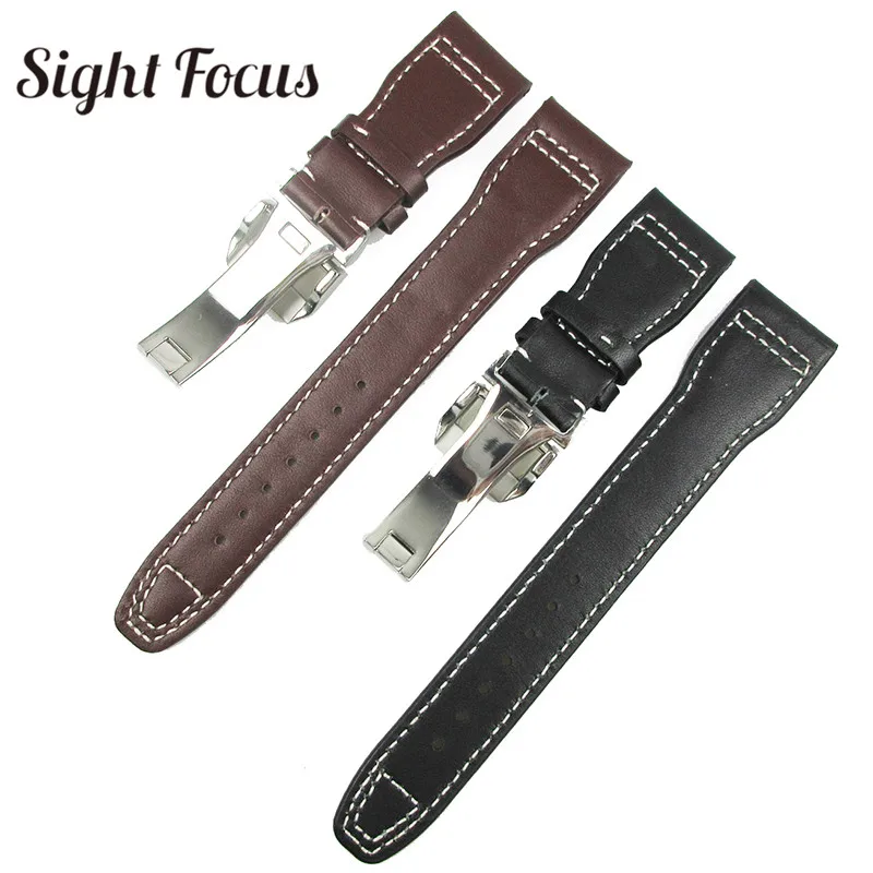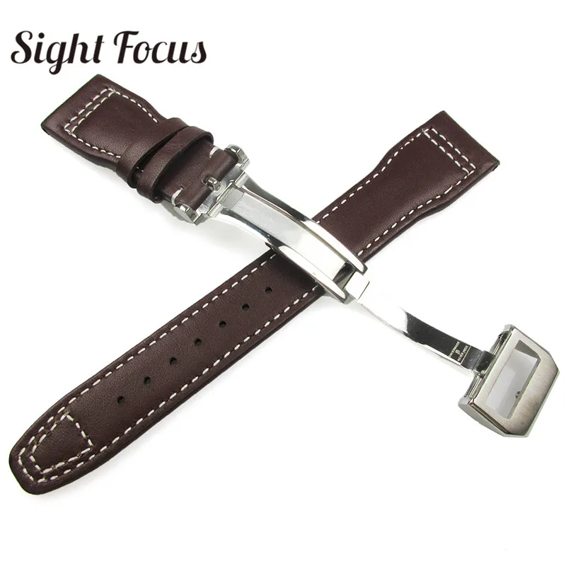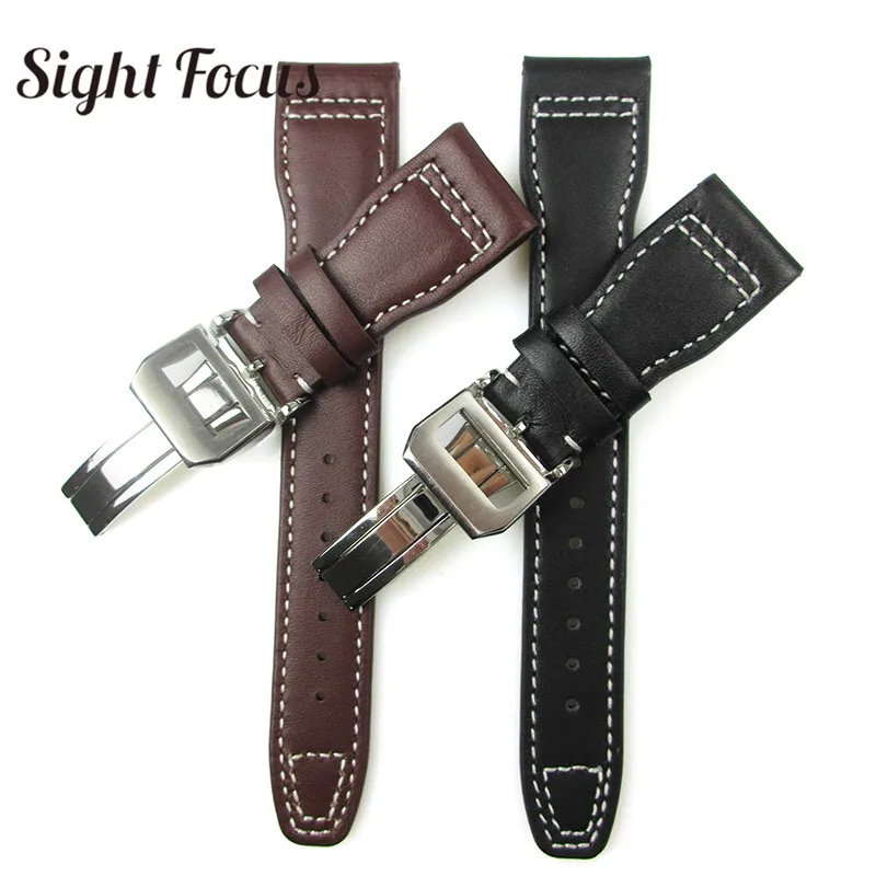 Ремешок для часов IWC Big Pilot Spitfire, черный, коричневый, из телячьей кожи, с календарем, хронографом, с раскладывающейся застежкой, 22 мм