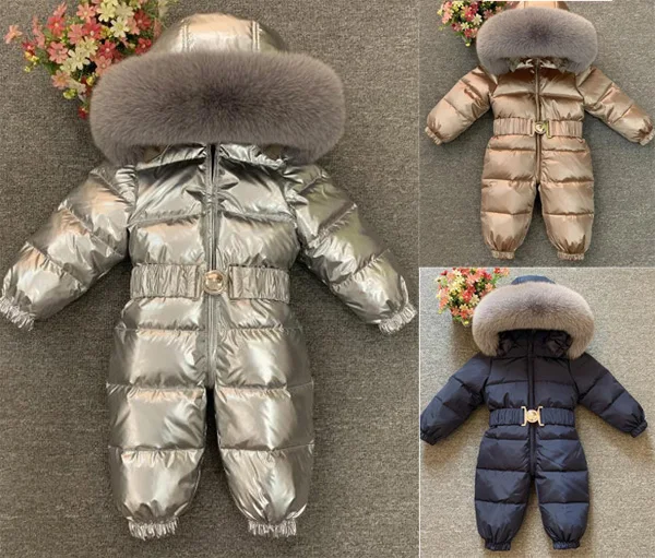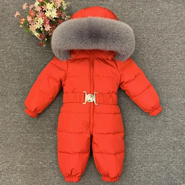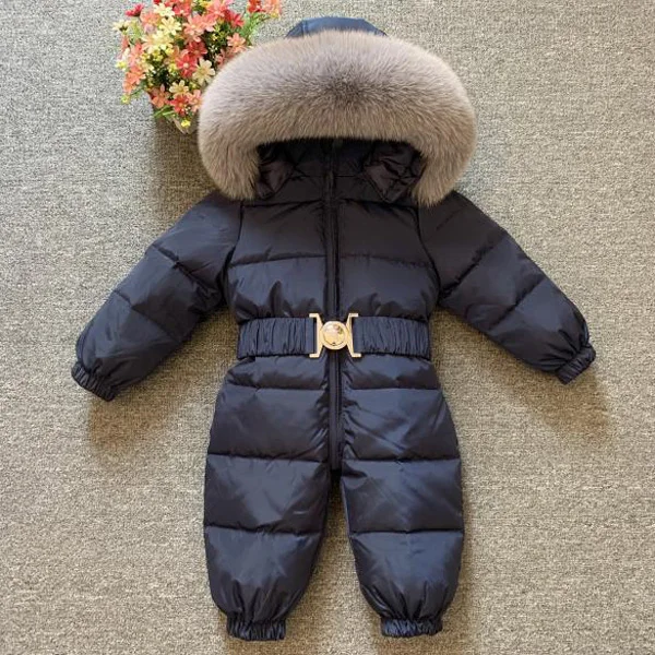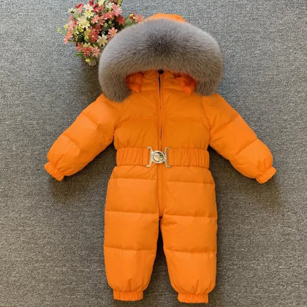Комбинезон детский От 1 до 5 лет для мальчиков и девочек, зимний пуховой комбинезон с воротником из натурального меха, детская верхняя одежда для русской зимы