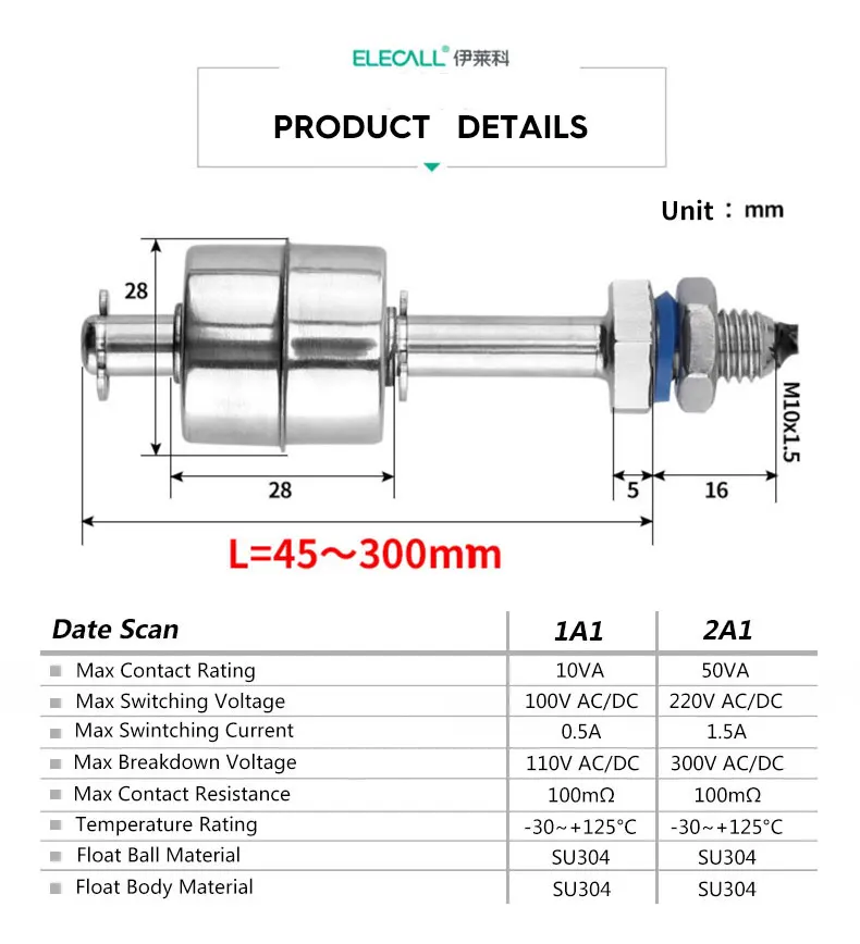 Поплавковый выключатель ELECALL, термостойкий автоматический датчик контроллера уровня, башенка для воды из нержавеющей стали 304