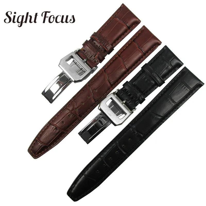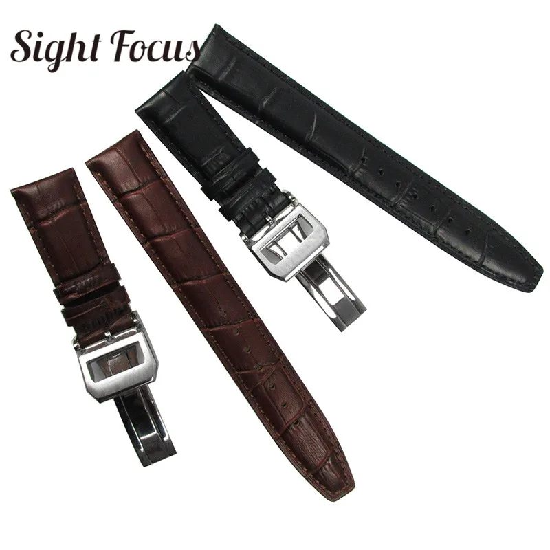 Ремешок матовый из телячьей кожи для IWC, браслет для часов с хронографом и раскладной застежкой-бабочкой, черный коричневый, 20 мм 22 мм