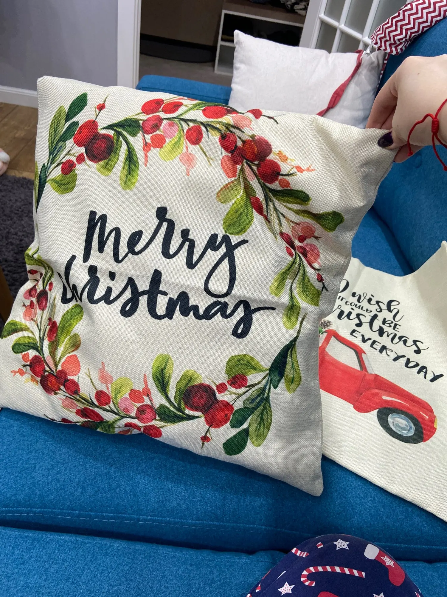 Очень классные наволочки, создают новогоднее настроение в доме! Спасибо продавцу, быстро отправил. Доставили до пятёрочки совместно с несколькими посылками. Ткань плотная, не просвечивает, скрытая молния, строчки ровные, лишних ниток, торчащих швов или каких-то недочетов нет, рисунок гармоничен, рекомендую. Заказывала 3 наволочки 45*45, все как в описании.