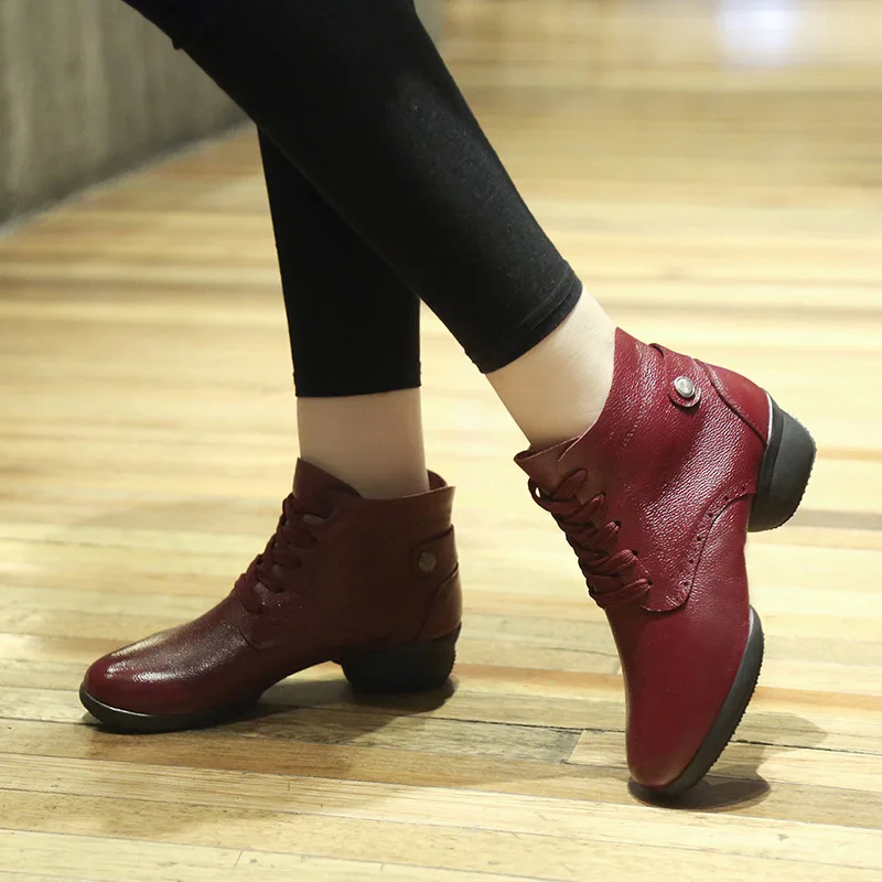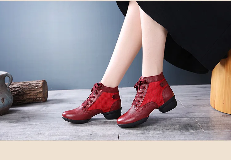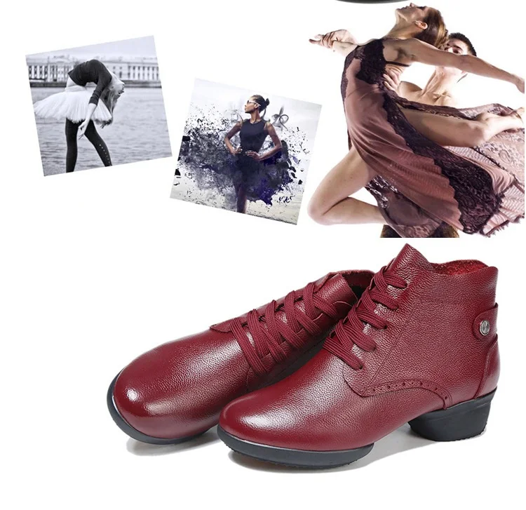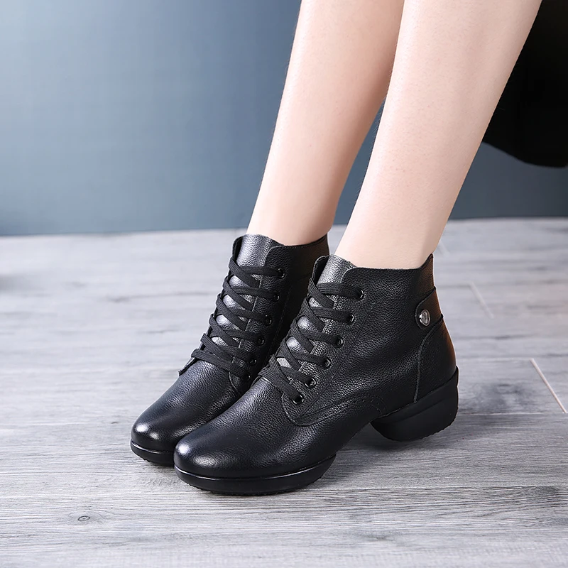 Кроссовки для танцев, кожаные, квадратные, сапоги на мягкой подошве