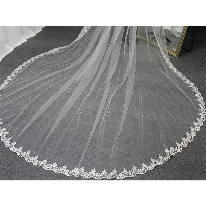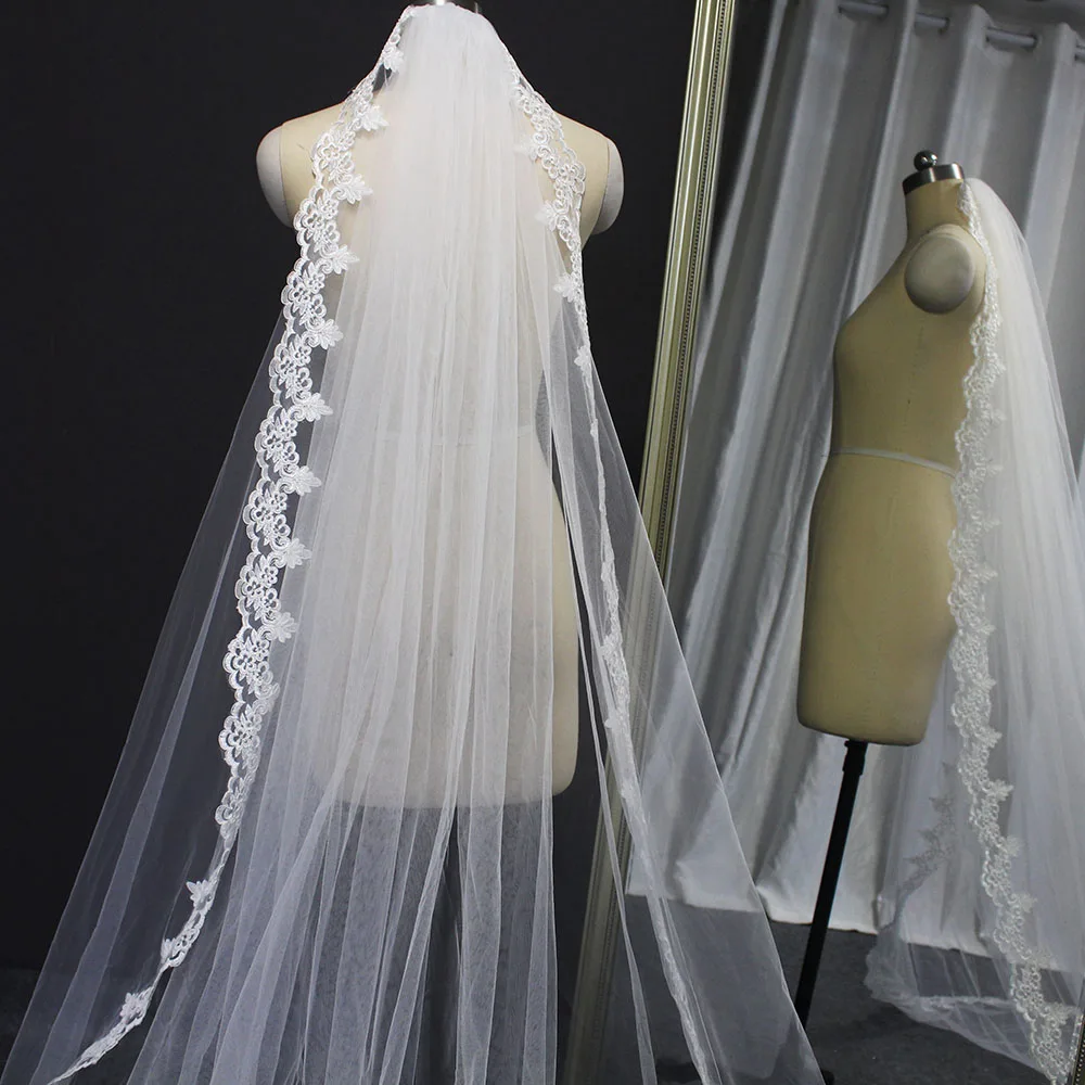 Новая кружевная Длинная свадебная вуаль, однослойная свадебная вуал...