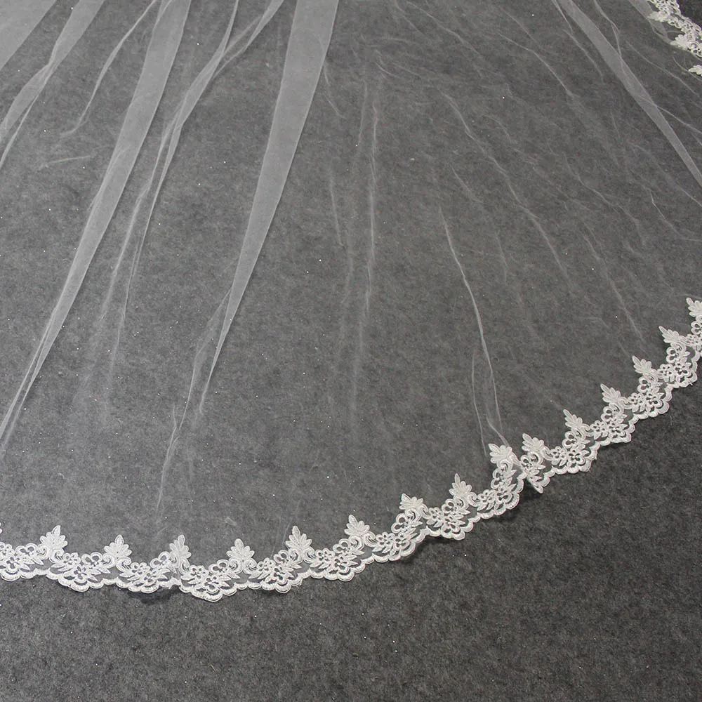 Реальные фотографии блестящая кружевная Длинная свадебная вуаль 2т ...