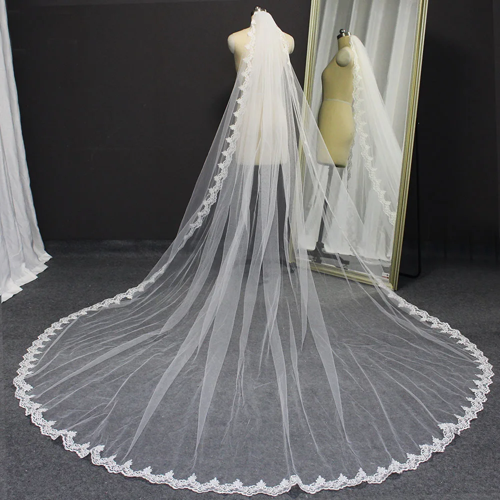 Роскошный длинный кружевной вуаль с расческой, 4 метра