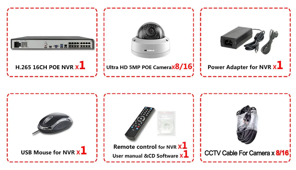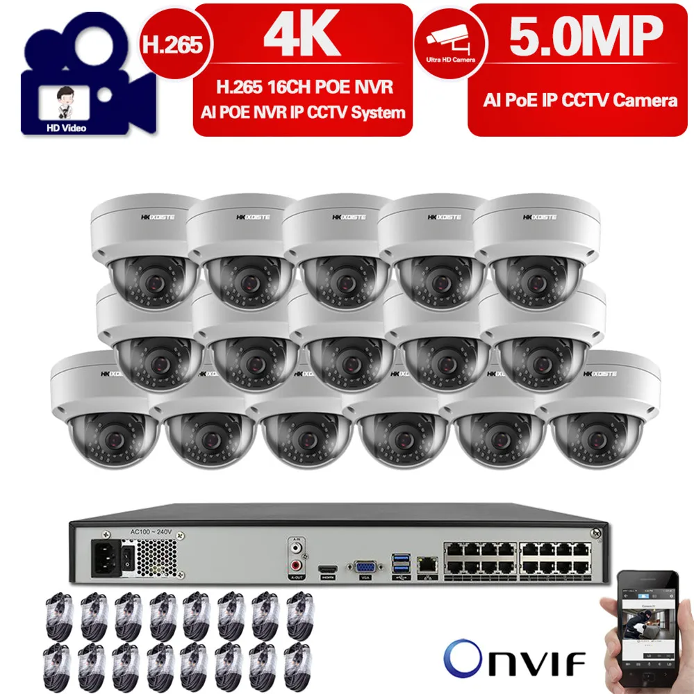 Комплект купольных IP-камер ONVIF, 16 каналов, 4K, NVR, 5 МП, POE, 816 шт.