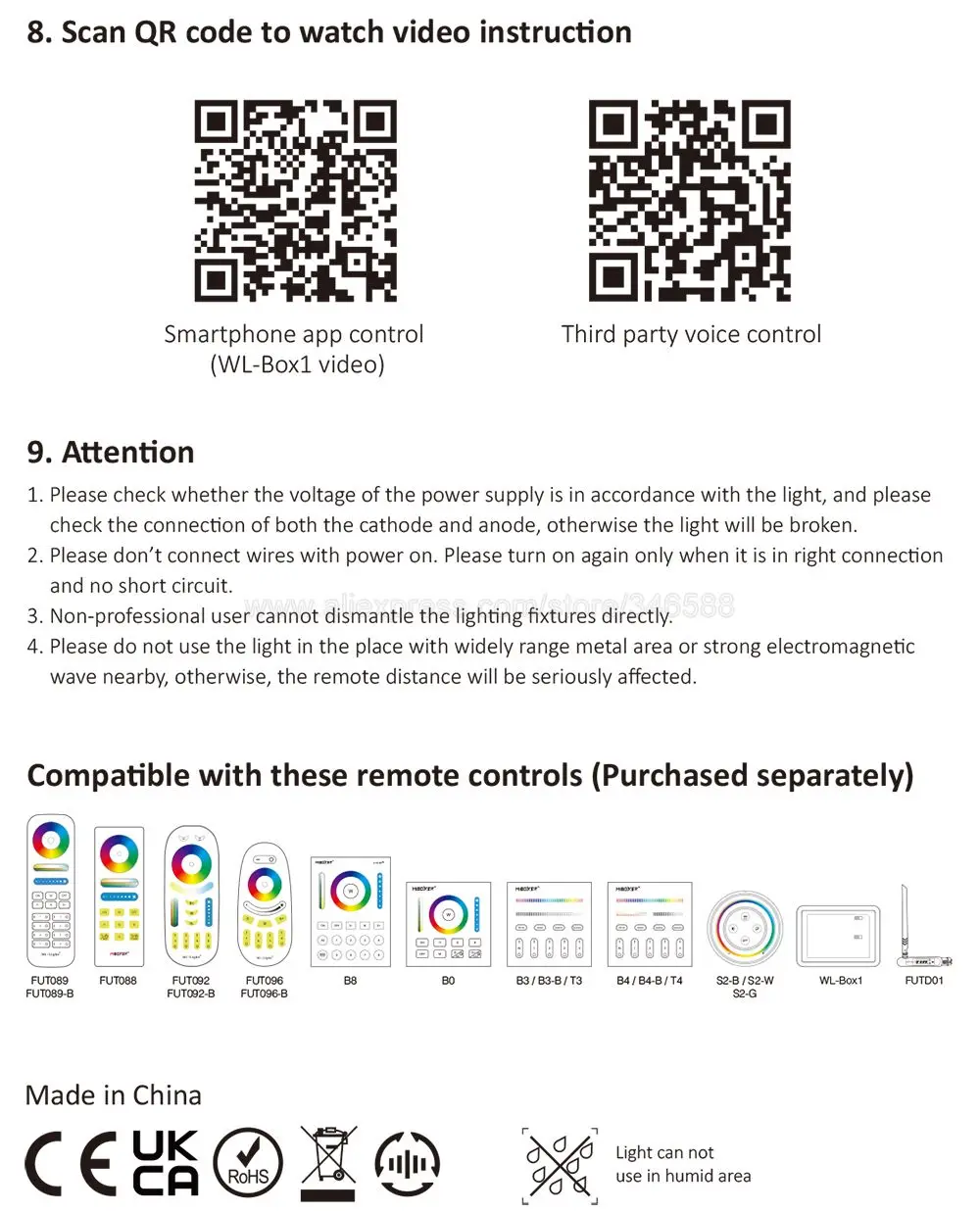 Управление светодиодной лентой MiBOXER FUT039 (обновленная версия), 2,4 ГГц, RGB + CCT, управление через приложение для смартфона, 2,4 ГГц RF VoiceDMX512, управление панелью управления