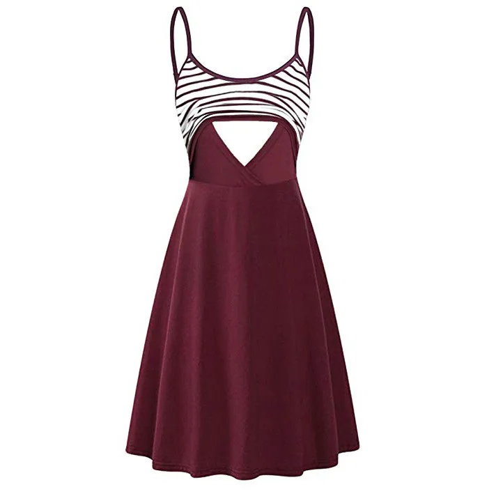 Женское платье для беременных летнее Полосатое платье для грудного вскармливания Одежда для беременных без рукавов для кормящих матерей