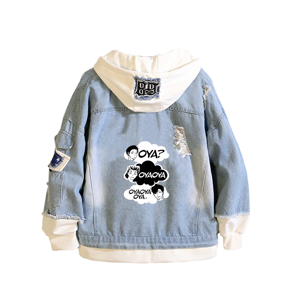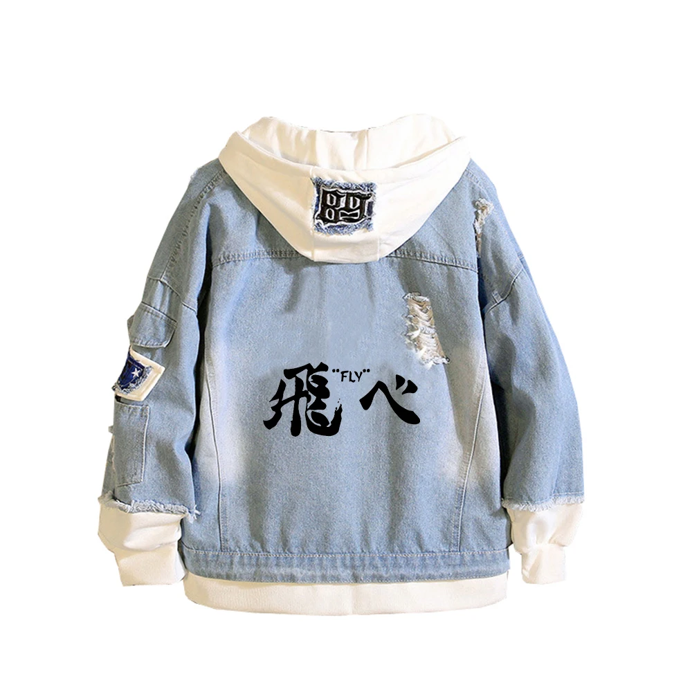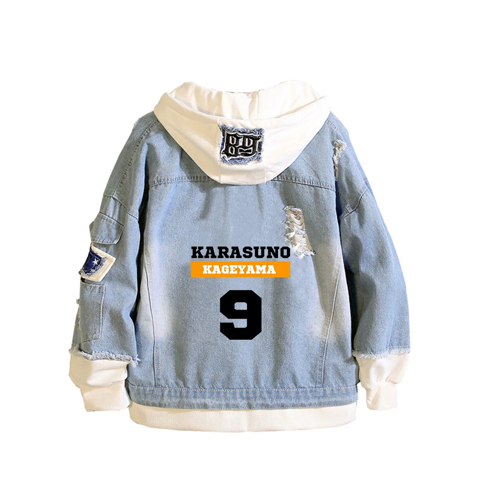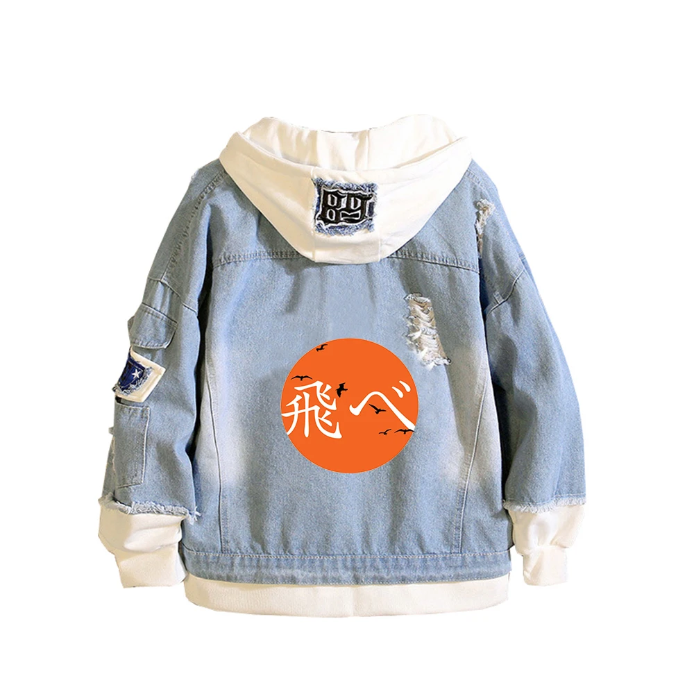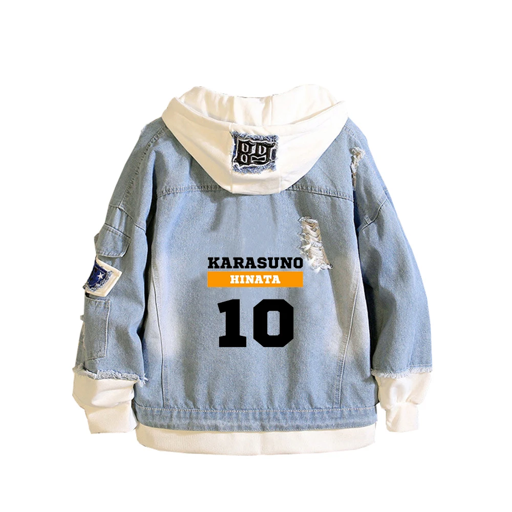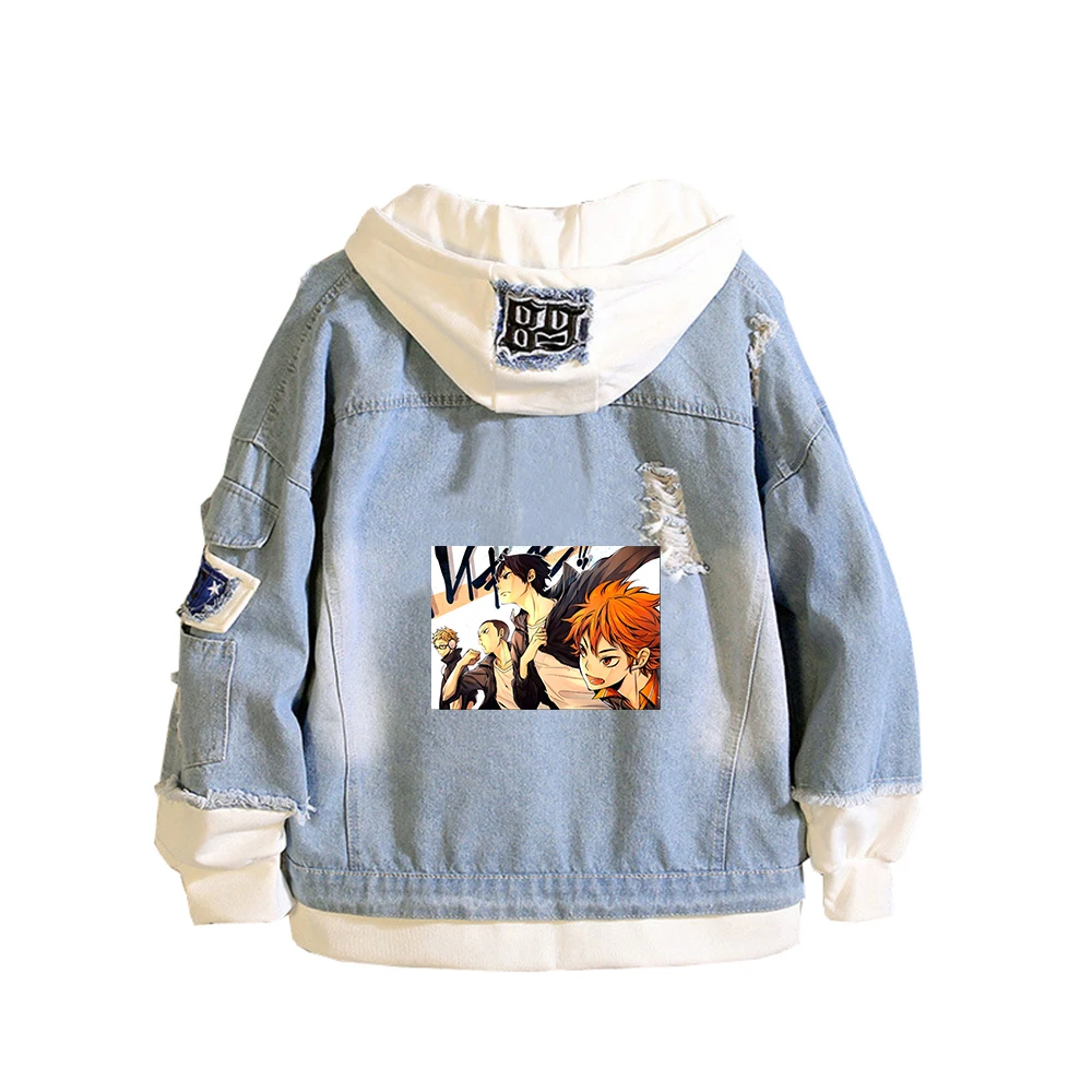 Женская джинсовая куртка с принтом Haikyuu Karasuno VBC, джинсовые толстовки с капюшоном в стиле аниме, уличная одежда для пары