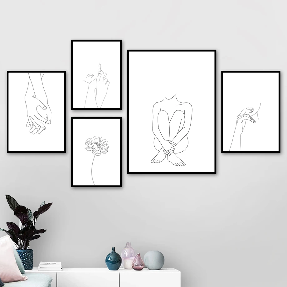 Настенные картины в скандинавском стиле с изображением девушек и же...