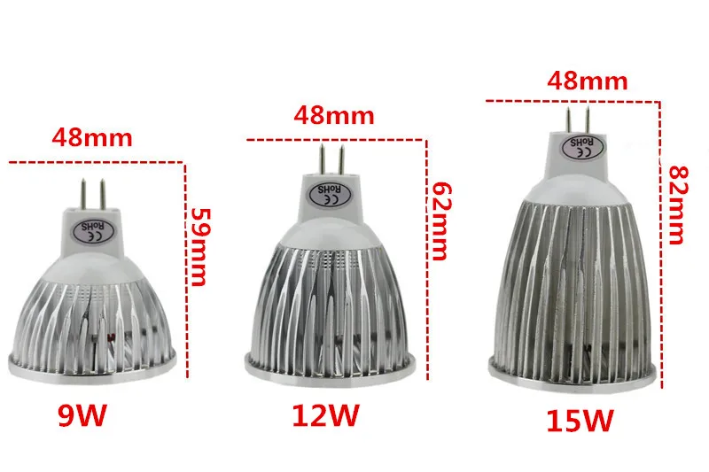 1 шт., Светодиодная лампа высокой мощности MR16 GU5.3 Shock, 9 Вт, 12 Вт, 15 Вт, теплое освещение, теплое освещение, 16 В, 12 В, лампа Gu 5,3, 220 В