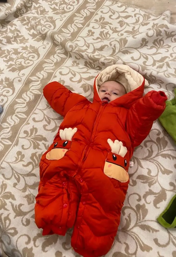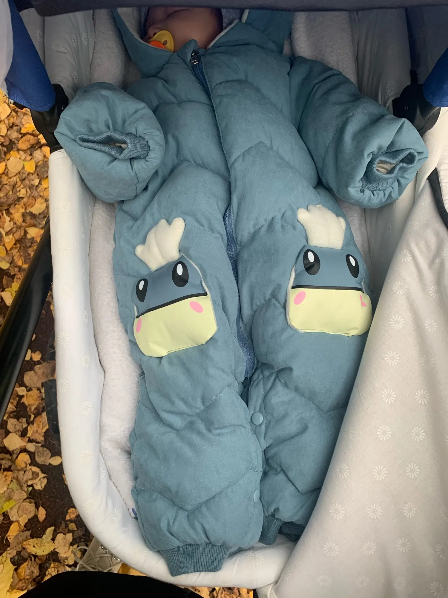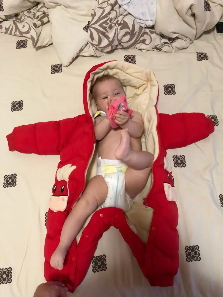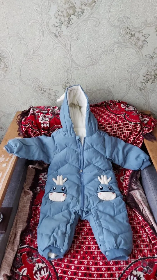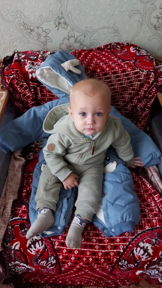 Комбинезон красивый заказывала на 6м думала будет маловат но наоборот большеват нам сейчас 5 м и рост 65см есть запас надеюсь будет тепло зимой малышу