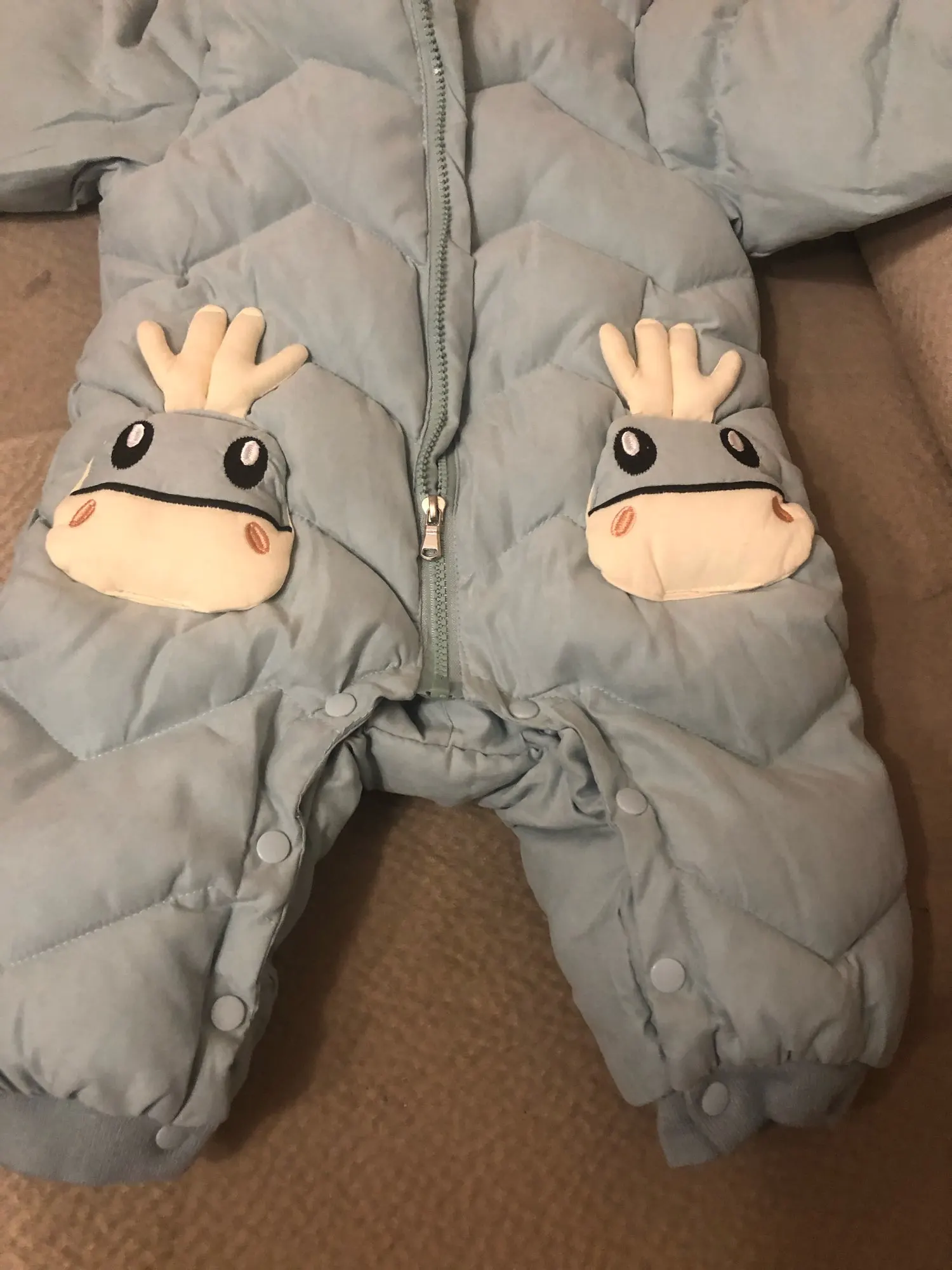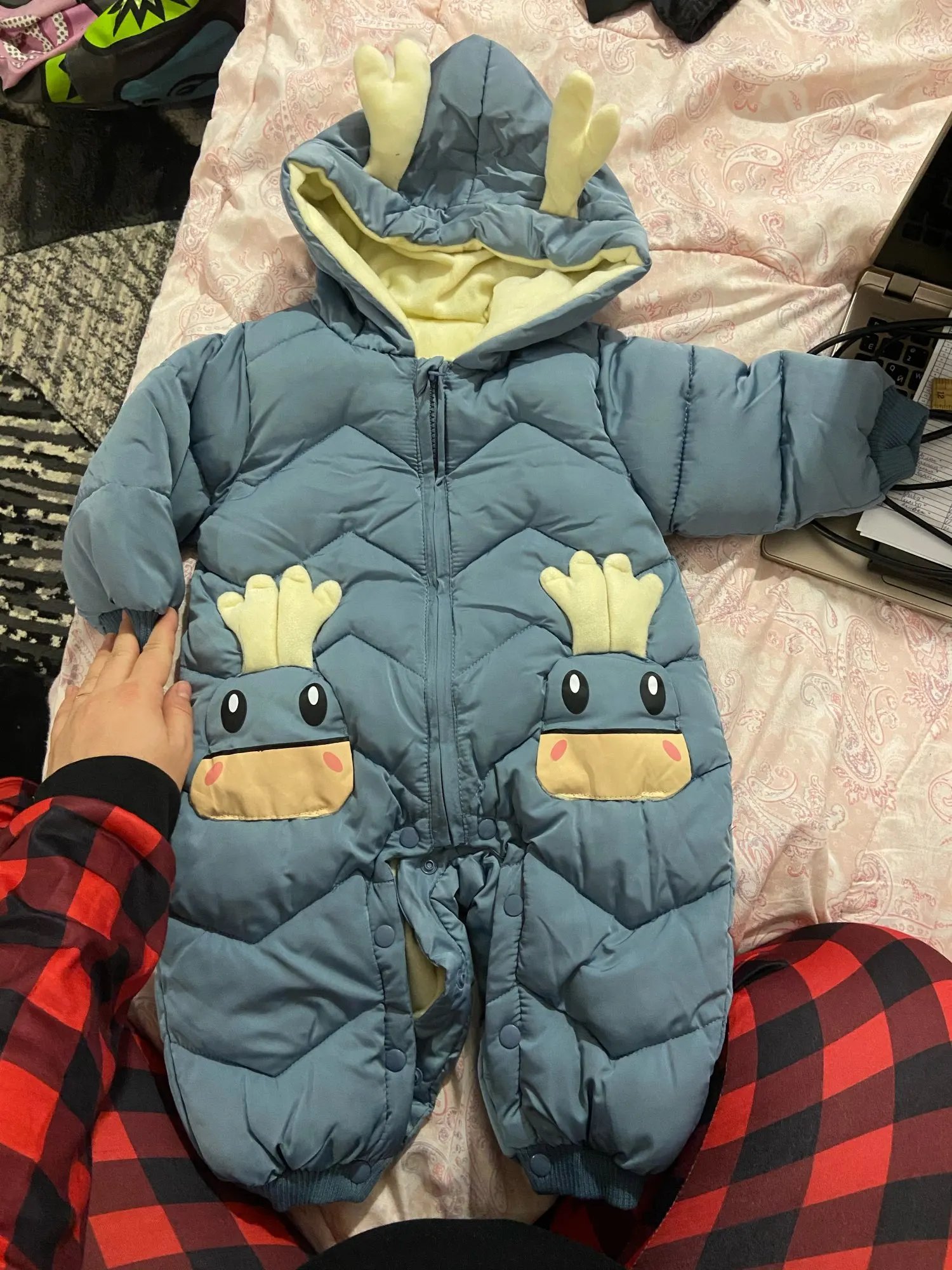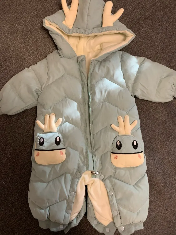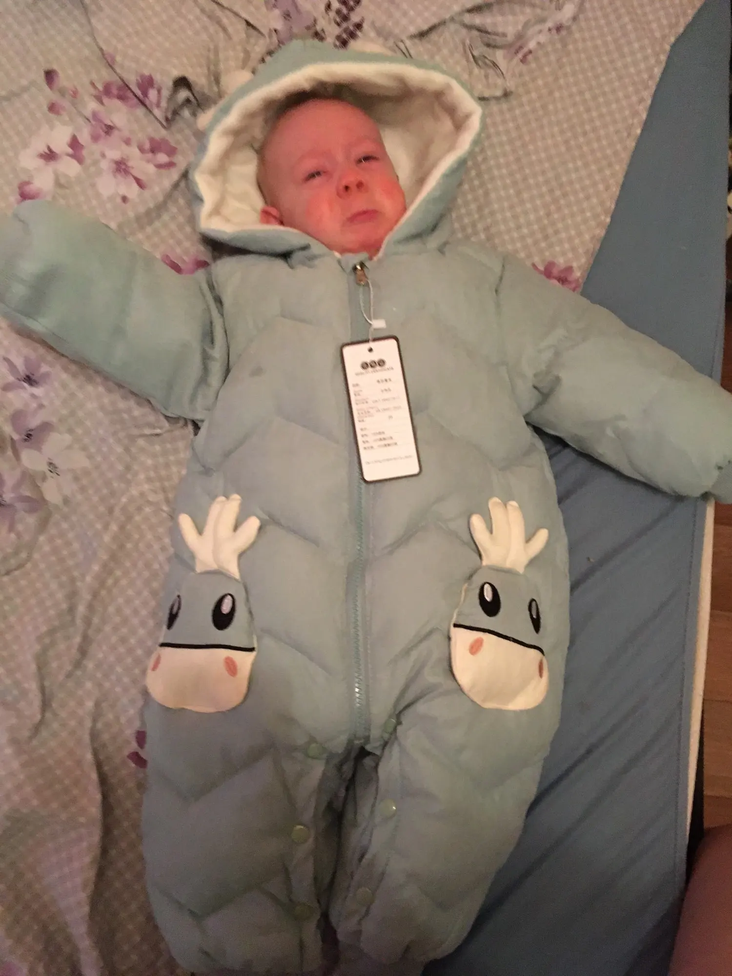 Комбинезон красивый заказывала на 6м думала будет маловат но наоборот большеват нам сейчас 5 м и рост 65см есть запас надеюсь будет тепло зимой малышу