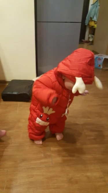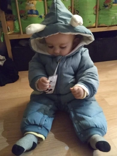 Хороший комбенизон, на осень самое то, очень мягкий, лёгкий и тёплый. на 11мес, рост 76 вес 9900 брала р-р 9мес, т. К прочитала что они большемерят, по телу по ручками хорошо сидит в ногах чуть чуть коротковат, но с высокими ботиночками огонь, на самом кобинезоне написан р-р 80, походим еще до конца сезона.