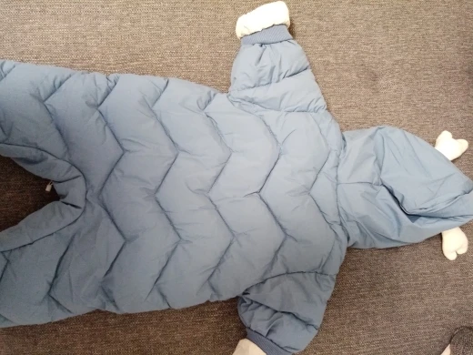 Упаковка была повреждена и заклеена скотчем, но товар не пострадал. Посылка доставлена довольно быстро. Комбинезон отлично выглядит! Лишних ниток нет, замочек к клёпки работают хорошо. Пока он не использовался, но думаю, что на весну и осень подойдёт, для зимних прогулок нужно выбрать что - то теплее.