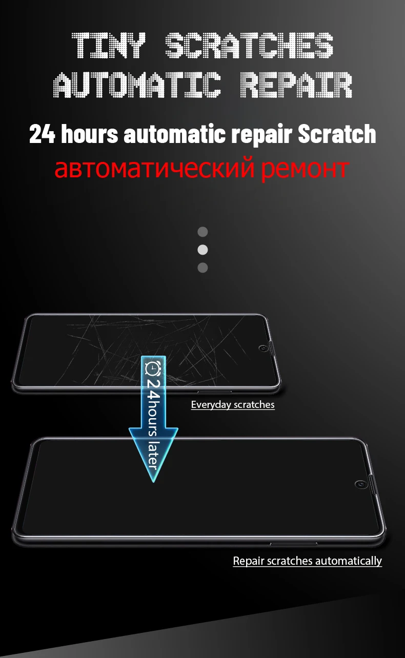 Особенности и технические характеристики: -Новая Гидрогелевая мягкая пленка обеспечивает высокую защиту вашего экрана. -Гидрофобное и олеофобное покрытие защищает ваш телефон от пятен, таких как масло, отпечатки пальцев и т. д. -Супертонкий и прозрачный дизайн гарантирует HD просмотр. -Высокая чувствительность и отклик, как и оригинальный экран -Царапины на экране естественным образом восстановятся, чем тоньше, тем быстрее -Значительно увеличивает прочность экрана, не нужно беспокоиться о том, что экран хрупкий для ежедневного использования -Гидрогелевая мягкая пленка является наиболее подходящей защитной пленкой на рынке для изогнутых экранов. Установка Руководство: Мы предоставим вам видео для объяснения установки, Новая мягкая Гидрогелевая пленка не требует каких-либо вспомогательных инструментов, более легкий процесс установки Список продуктов: 1 х Новая Гидрогелевая мягкая пленка для samsung 1 x протирочная Наборы 1 х специальный скребок