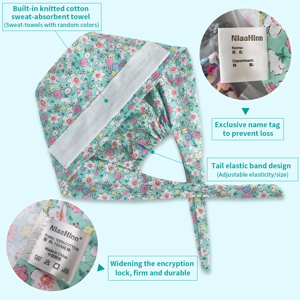 Шапка для медсестры с цветочным узором, регулируемая шапка с разным...