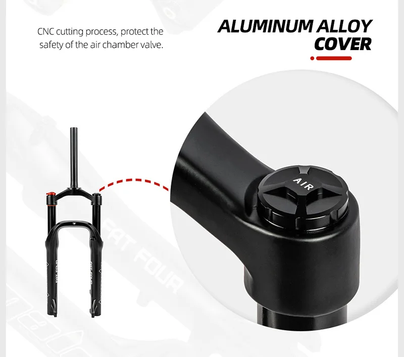 Ударная вилка на толстый велосипед, вилка для сноубайка, горного велосипеда, 20-дюймовая Велосипедная вилка с воздушным и газовым замком, вилка из алюминиевого сплава для шин 4,0 дюйма, 135 мм