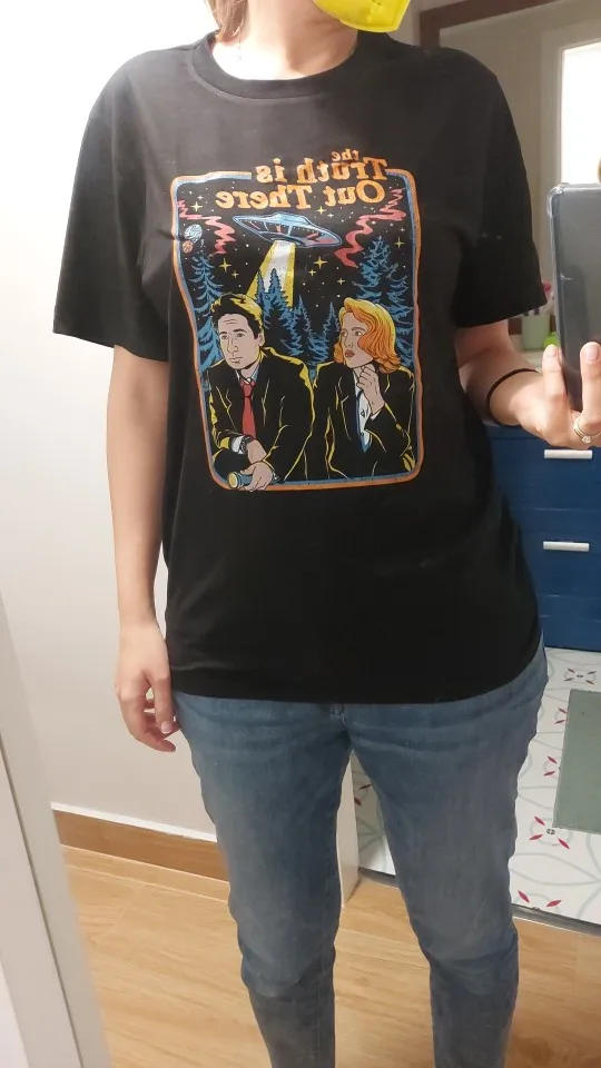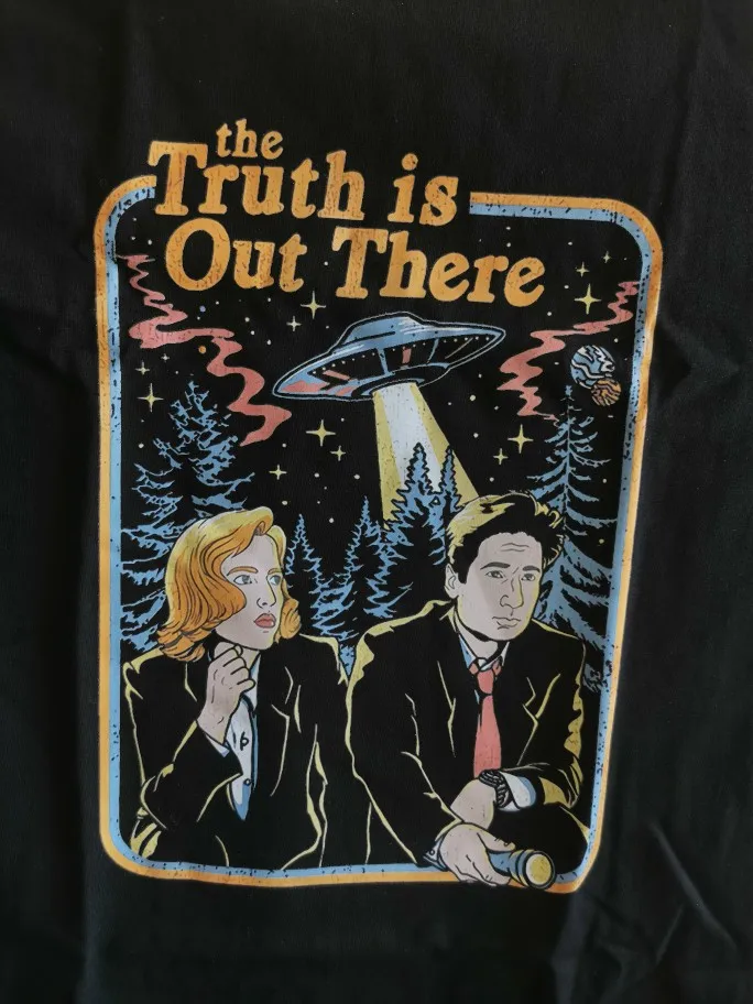 Крутая футболка для крутых ребят, фанатов икс файлс ! единственное размер м на парня был бы маленьким, но мне норм. круто 1000000/10
