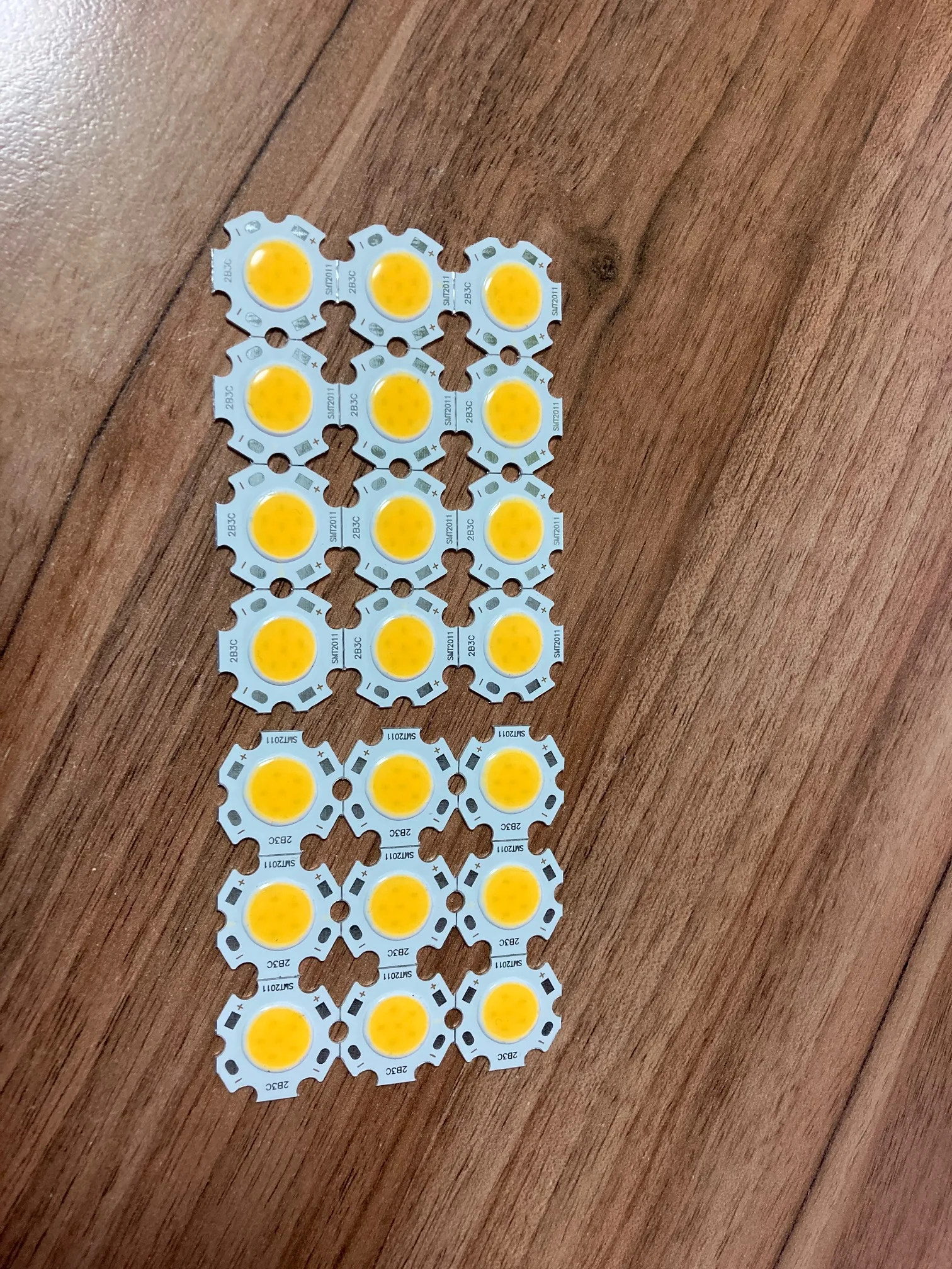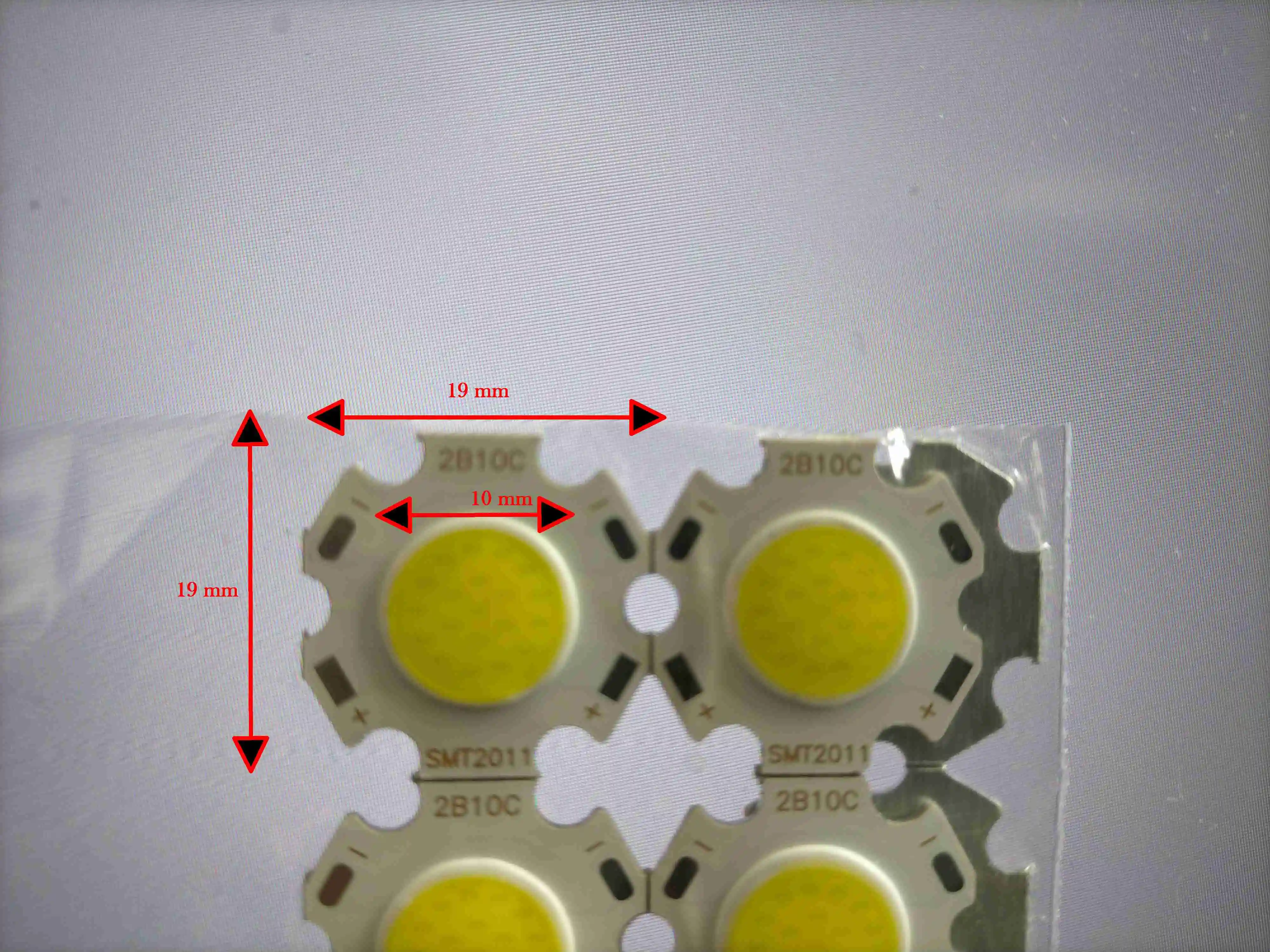 Судя по описанию, 12 Вт светодиоды в реале от силы 10 Вт (38 В * 0,26 А), но я поэтому и заказал 10 шт - лучше поставить пару светодиодов и "недогрузить" их, чем поставить один мощный, но работающий на пределе. Алюминиевая подложка толщиной всего 0,8 мм (у некоторых 1 Вт светодиодов подложка и то толще), не знаю, как это скажется на распределении тепла. В общем, думаю, больше 240 мА на них подавать не стоит, долго не продержатся.