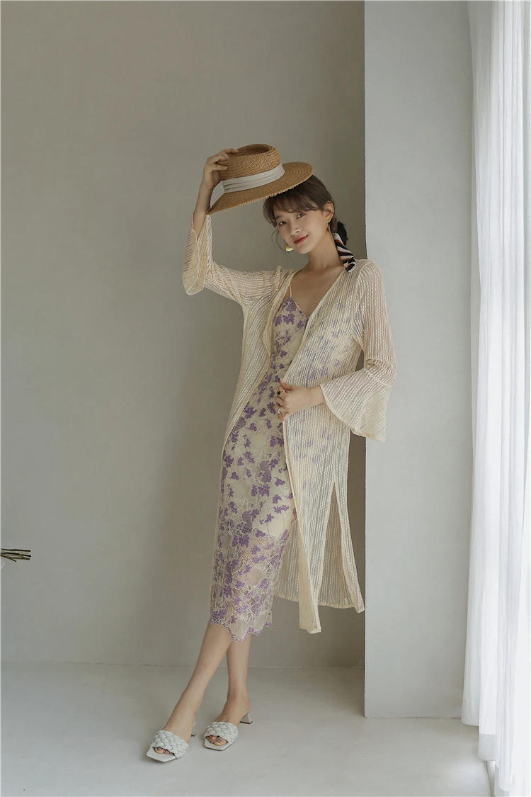 Длинное кимоно CHEERART, летний сетчатый кардиган с расклешенными рукавами, прозрачная Длинная блузка, женская блузка, Пляжное кимоно