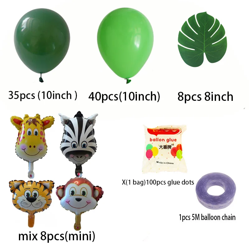 90 шт.компл. воздушный шар в виде животного, фотоэлемент, зеленый латексный шар, детский день рождения, джунгли, фотоэлемент, детский праздник, товары для вечеринок