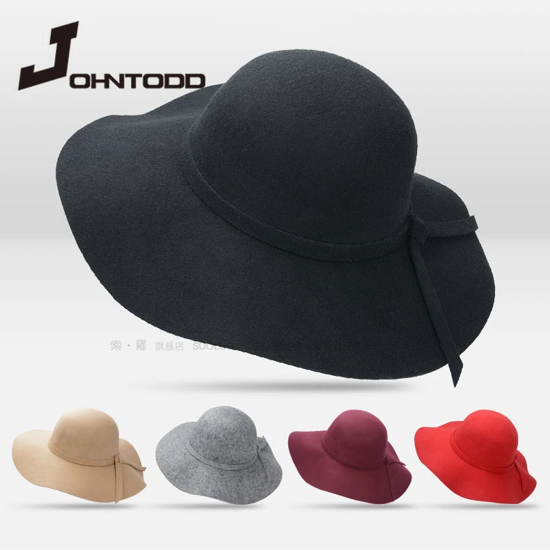 Шляпа Женская фетровая с широкими полями, классический тёплый фетровая шляпа-котелок с шерстью, для пляжа, дамская шляпа Федора