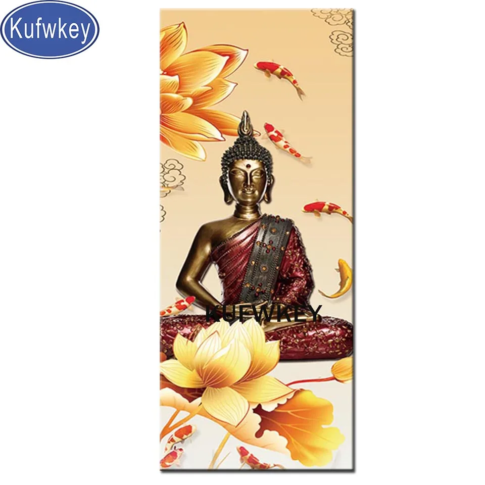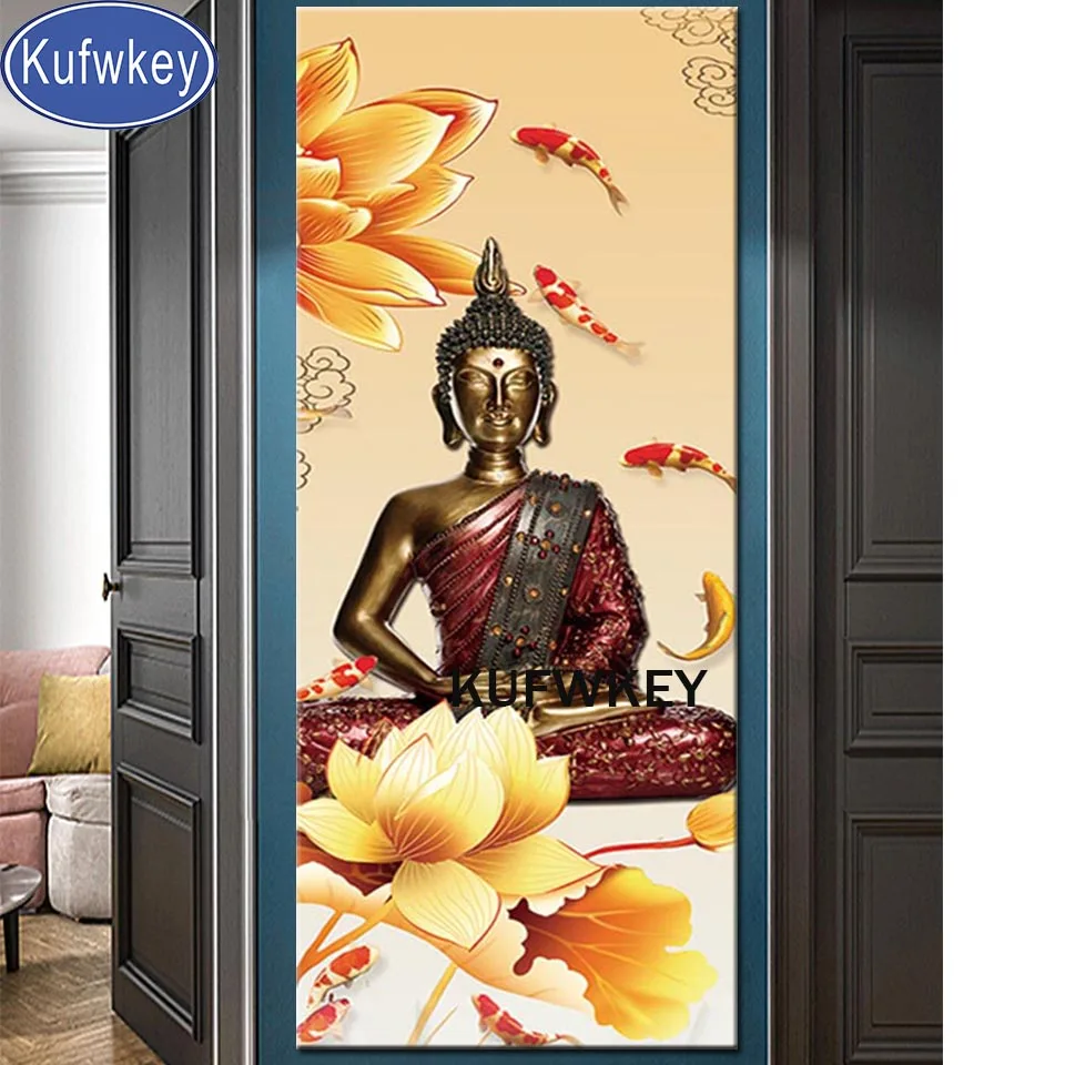 Объемные большие Будды, золотые лотосы, наклейки, полноразмерная круглая алмазная живопись, вышивка крестиком, рисунки, алмазная вышивка, цветы, Декор