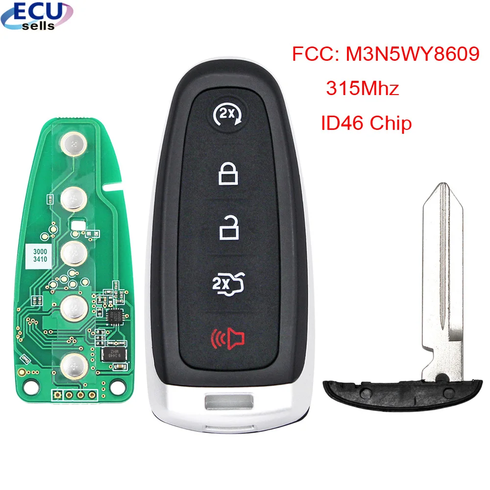 Смарт-пульт дистанционного запуска Smart Prox, брелок-передатчик для Ford 5 Button 315 МГц, чип ID46 FCC: M3N5WY8609 с маленьким ключом HU101