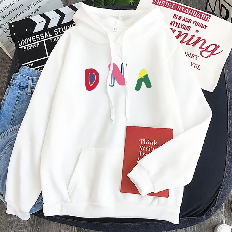 Модная толстовка с капюшоном для девочек-подростков, толстовка с капюшоном и принтом ДНК, теплая верхняя одежда с капюшоном