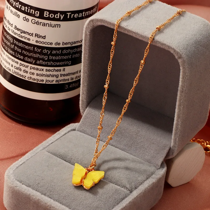Ожерелье из сплава, цветные акриловые украшения в виде бабочки, милая цепочка для ключиц, вечерние ожерелья на день рождения