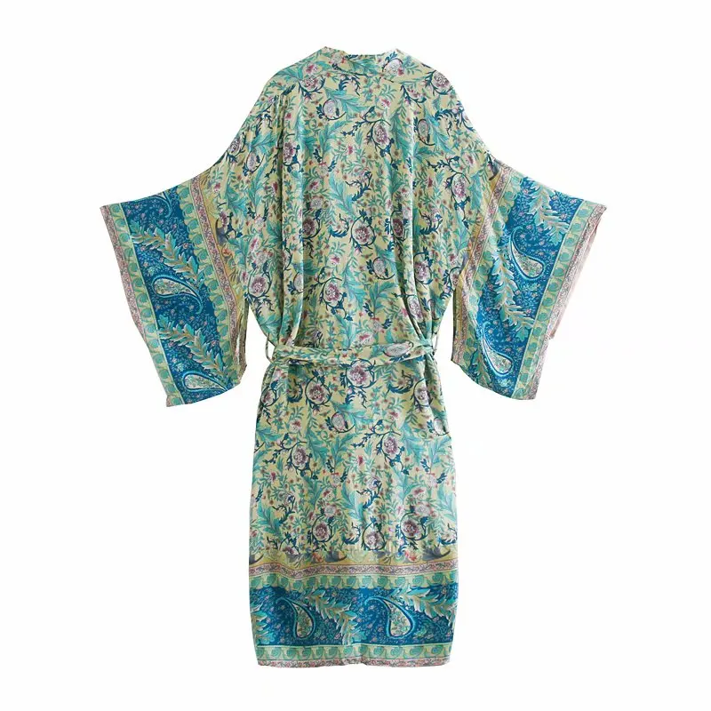 Женское летнее кимоно с цветочным принтом и рукавом летучая мышь