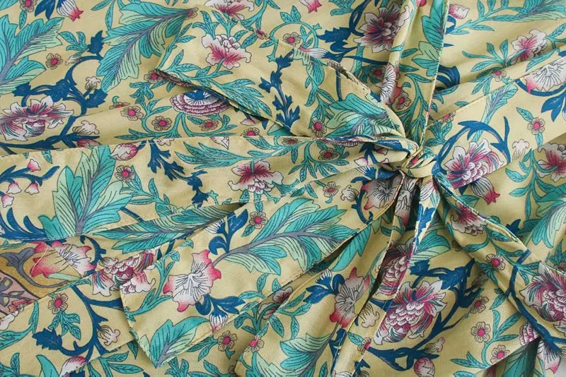 Женское винтажное кимоно с цветочным принтом, желтое богемное кимон...
