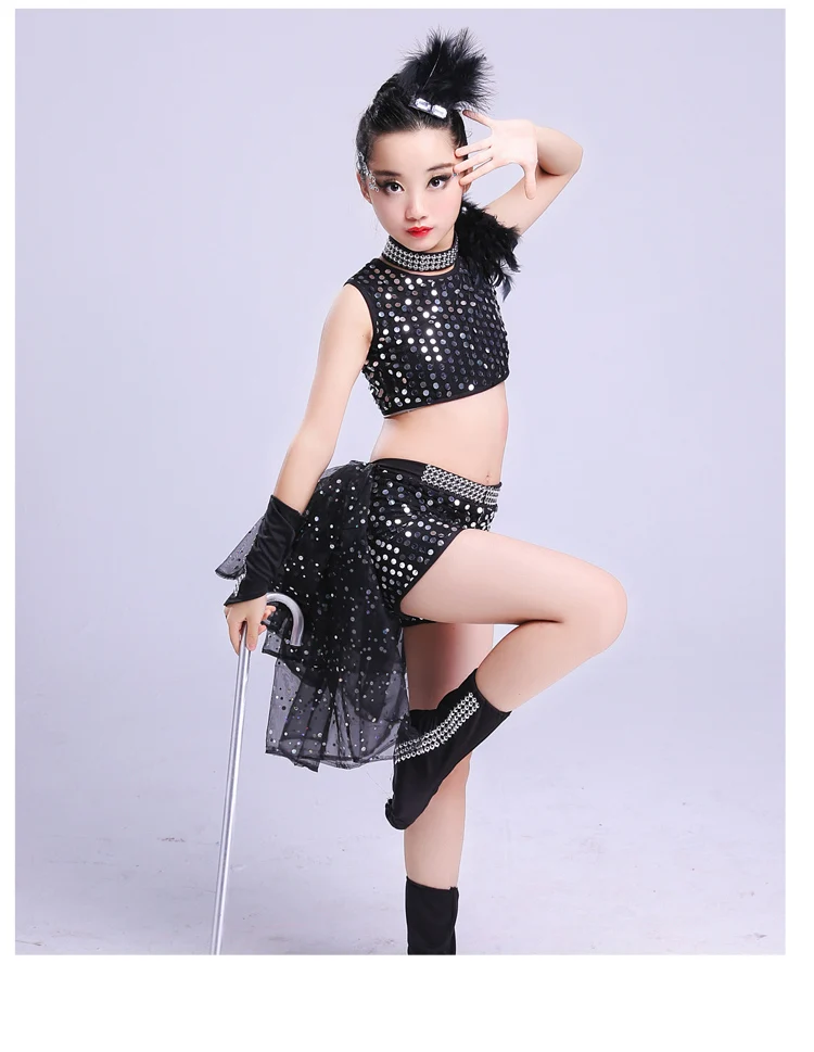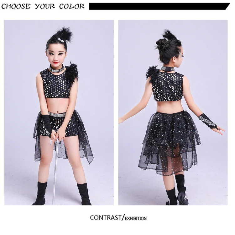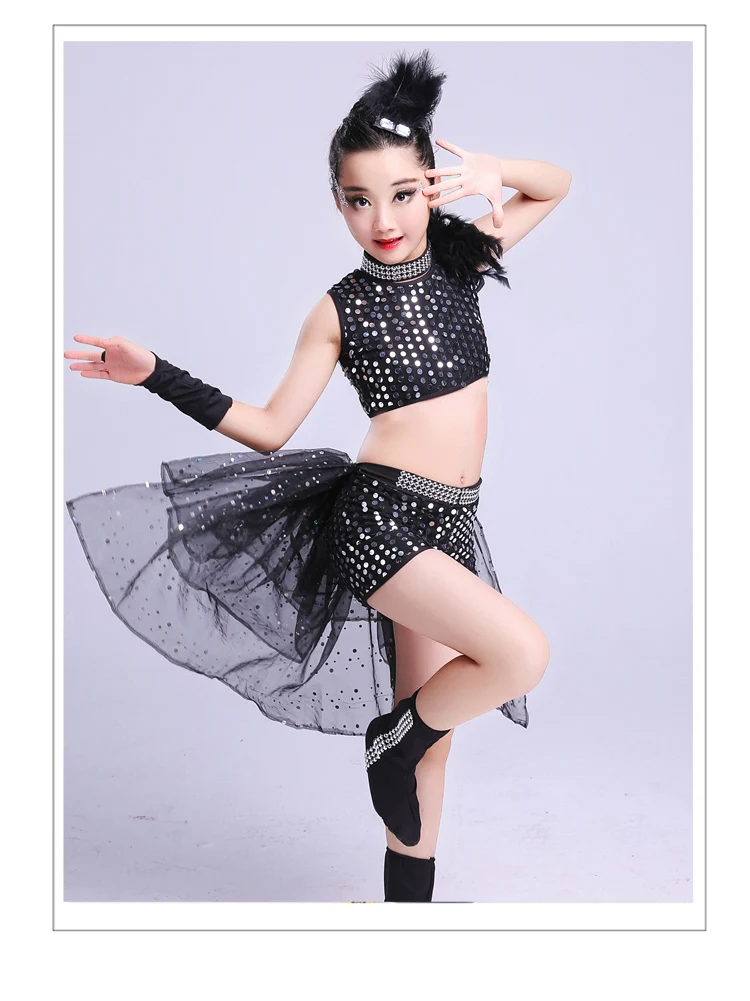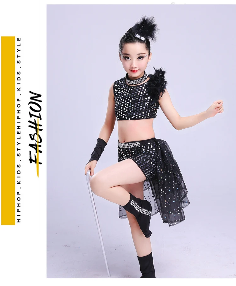 Джазовые танцевальные костюмы для девочек, танцевальные костюмы для детей в стиле хип-хоп, детские танцевальные костюмы с блестками для сцены, черные костюмы в стиле хип-хоп
