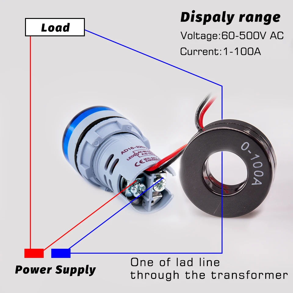 Цифровой мини-вольтметр 2 в 1, вольтметр-амперметр, измеритель напряжения и силы тока с AC50-500V 0-100 А, 22 мм, круглый