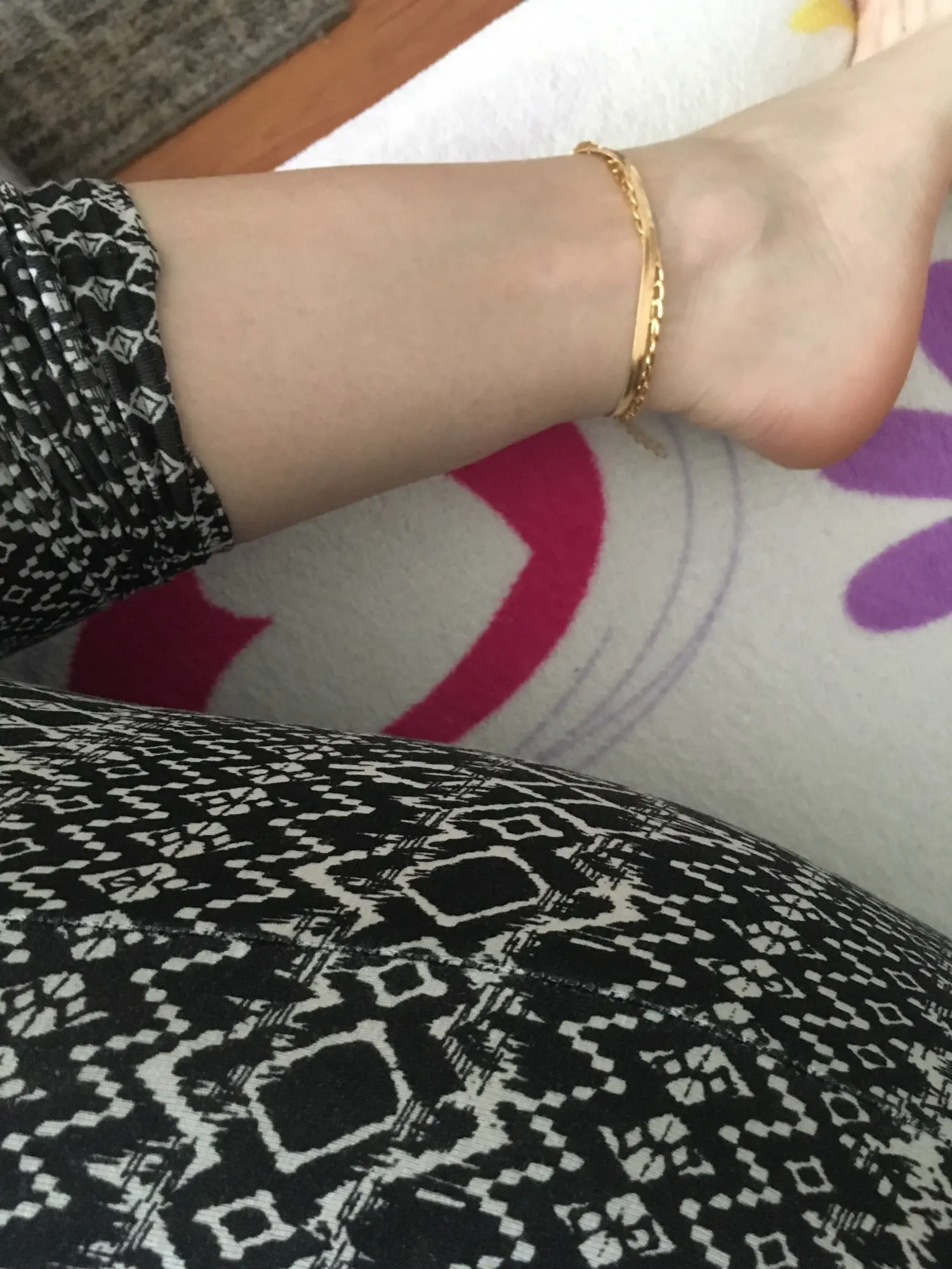 Браслеты подойдут даже на довольно широкую щиколотку. Я бы не назвала свою тонкой, при это все браслеты застегнулись на последнее колечко. "Гладкая" цепочка вообще спадает. Но все вместе на ноге выглядит классно.