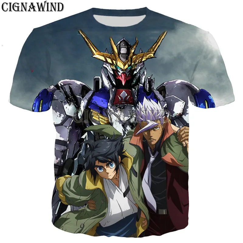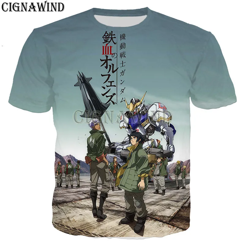 Популярная футболка с надписью "Железная кровь" для детей-сирот, мобильный костюм, Мужскаяженская футболка с 3D принтом, футболка в стиле Харадзюку, топы в уличном стиле