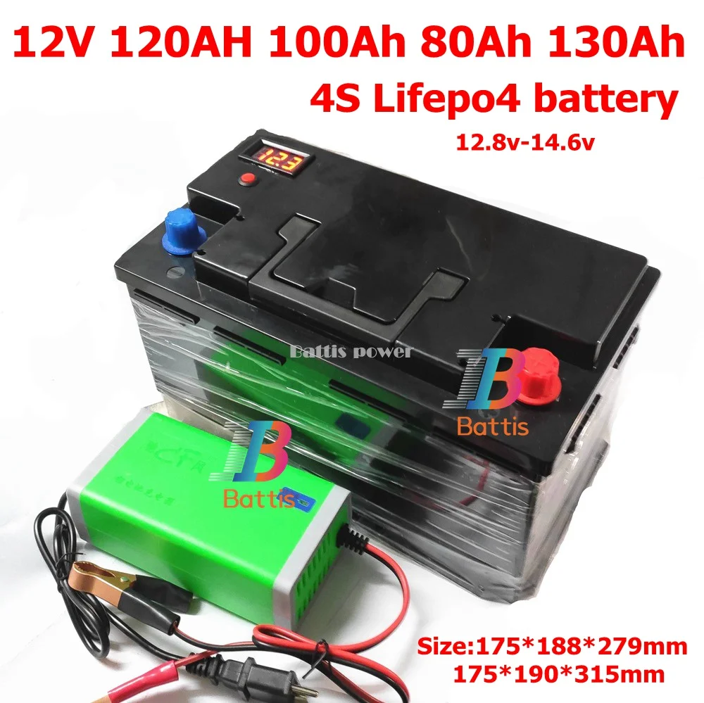 Battis литиевая 12V 12,8 v 120AH 100Ah 80Ah 130Ah lifepo4 батарея глубокого цикла для 1200W инвертор для лодки сабвуфер лодка + 10A зарядное устройство