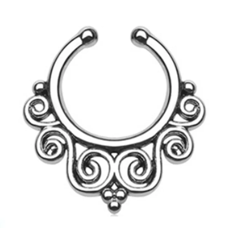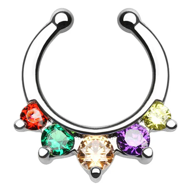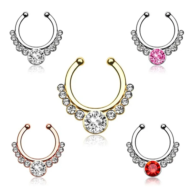 Кольцо-обманка для пирсинга носа с кристаллами, 12 шт.