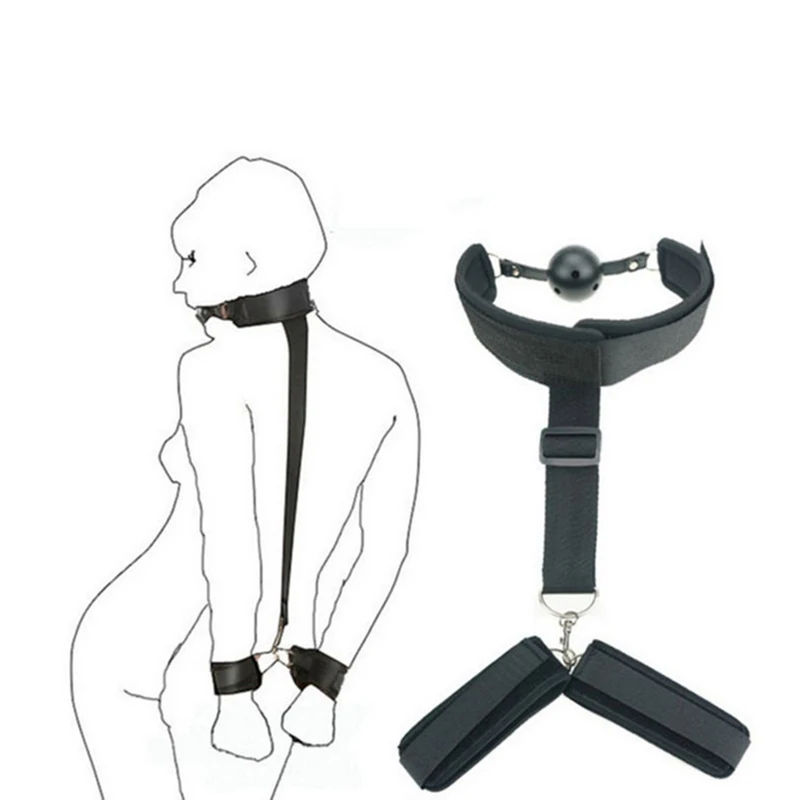 Эротические наручники на спину с шеей, кляп для рта, шар для женской спецификации, БДСМ, бондаж, снаряжение, фетиш, мужские эротические секс-игрушки, Наручные Манжеты На Запястье