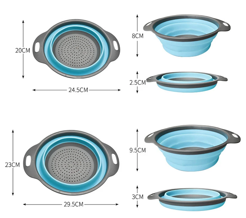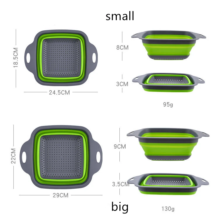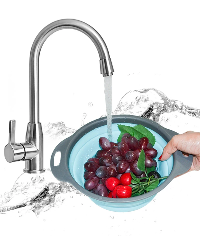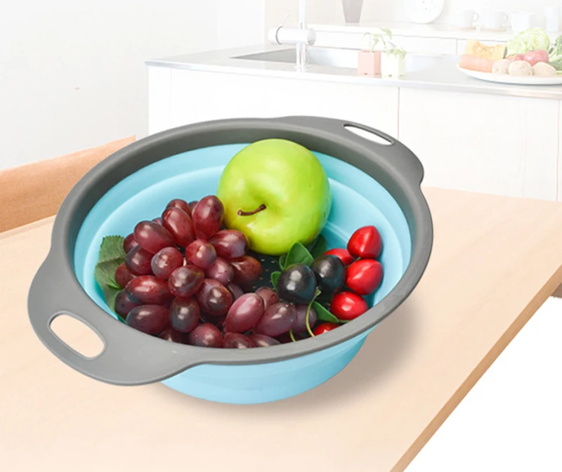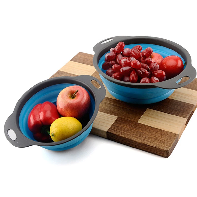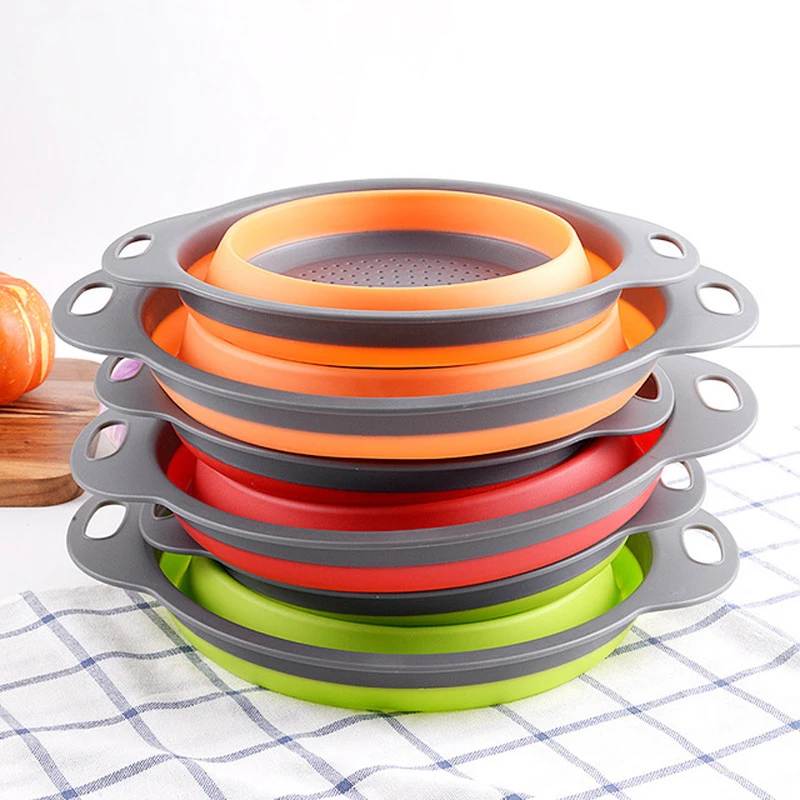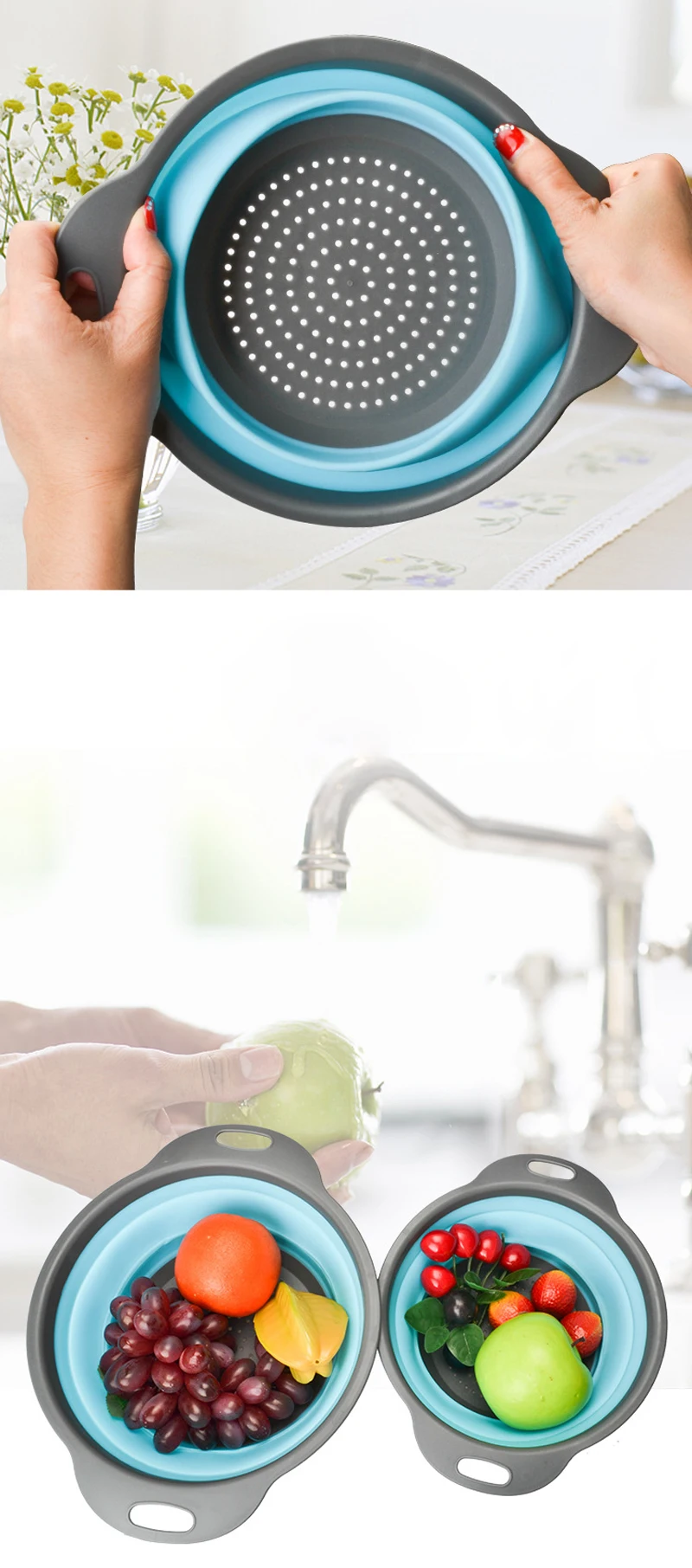 Складная сливная корзина для дуршлага, 2 шт., корзина для мытья фруктов и овощей, ситечко с ручкой, Силиконовый складной кухонный Органайзер