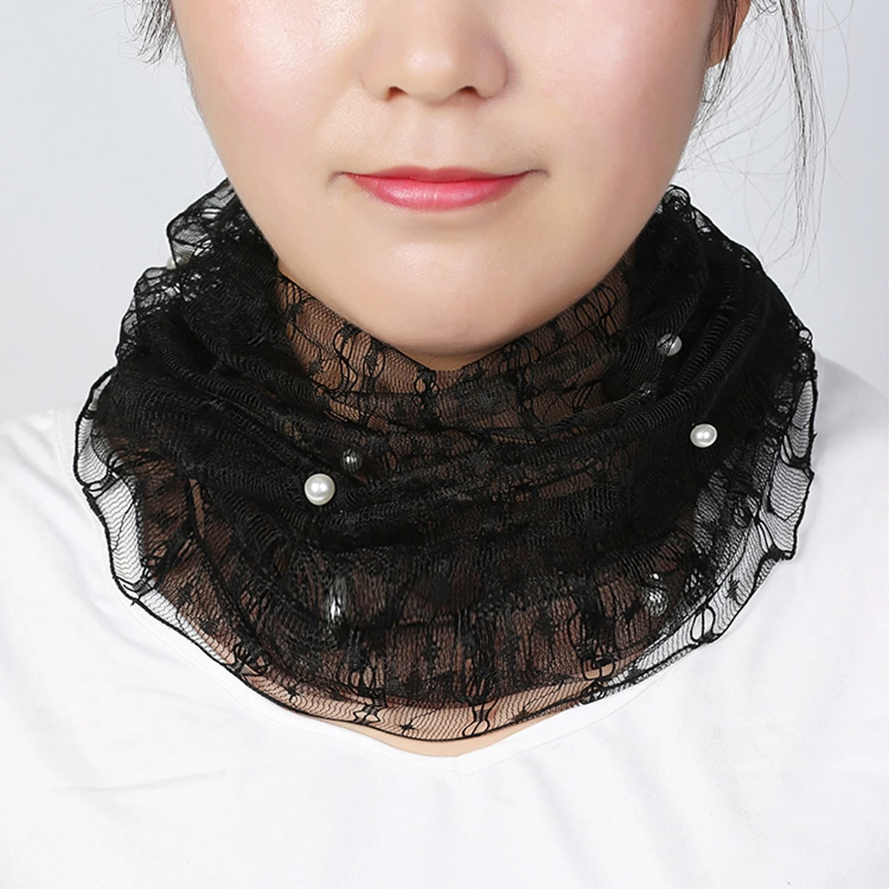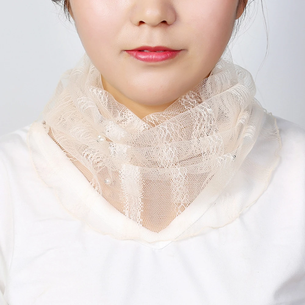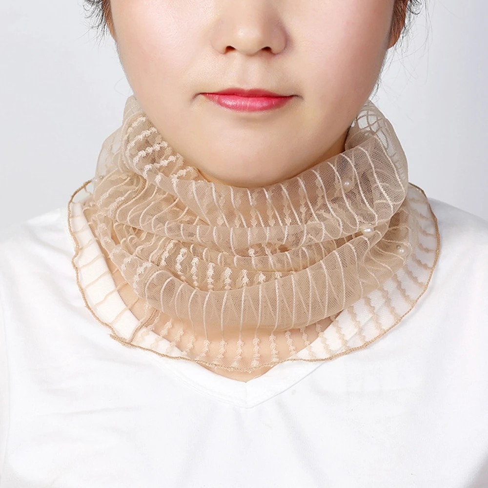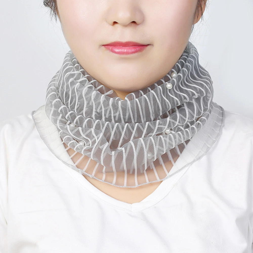 Женский шифоновый сетчатый шарф HanXi, мягкая эластичная повязка на голову с жемчугом, с искусственным воротником