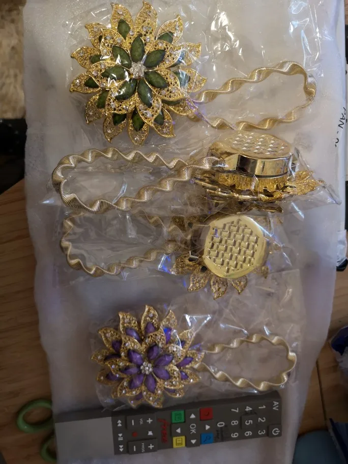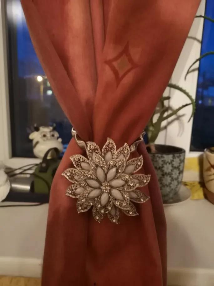 Магниты красивейшие и они выглядят больше, чем на фото а сам цветок переливается на солнце. На шторах смотрится обалденно вобщем покупкой я довольна, продавец умница отправил быстро и посылка пришла раньше положенного срока. Спосибо!