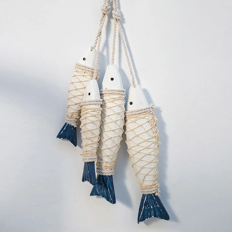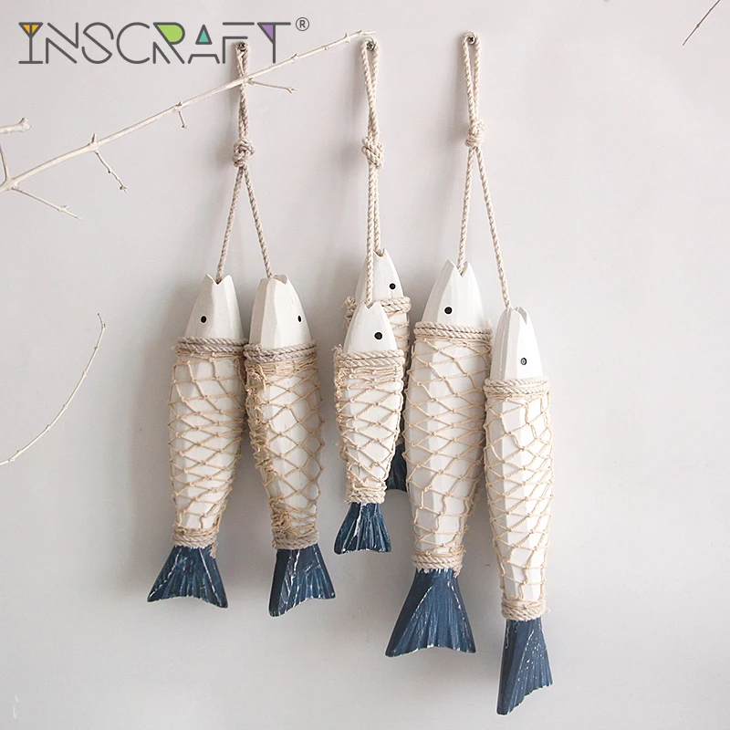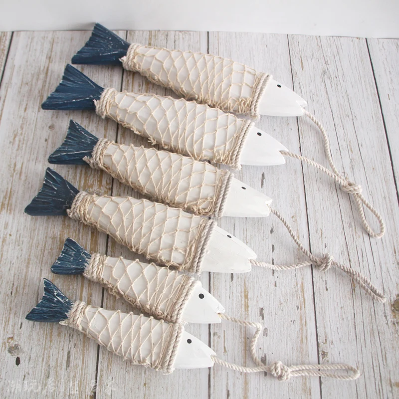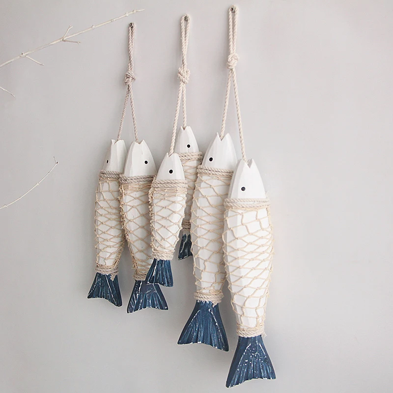 Настенное украшение ручной работы с изображением рыбы из натурального дерева, украшение для стен в средиземноморском стиле, деревянные подвесные украшения для бара