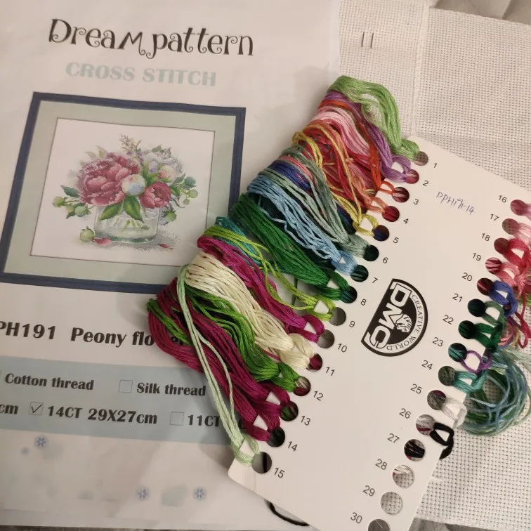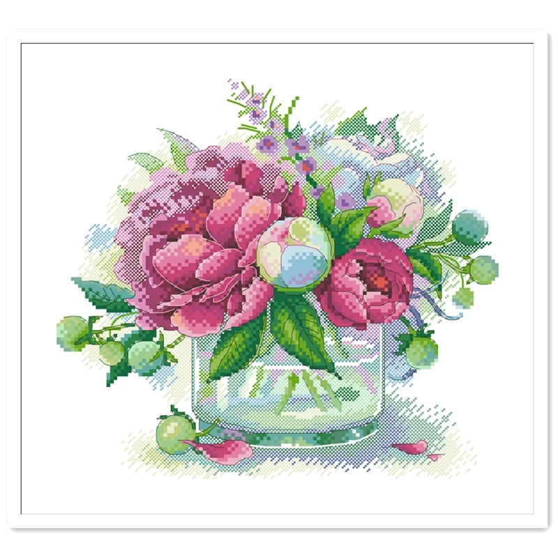 Набор для вышивки крестиком, ваза с пионами, 18 шт., 14 шт., 11 шт.