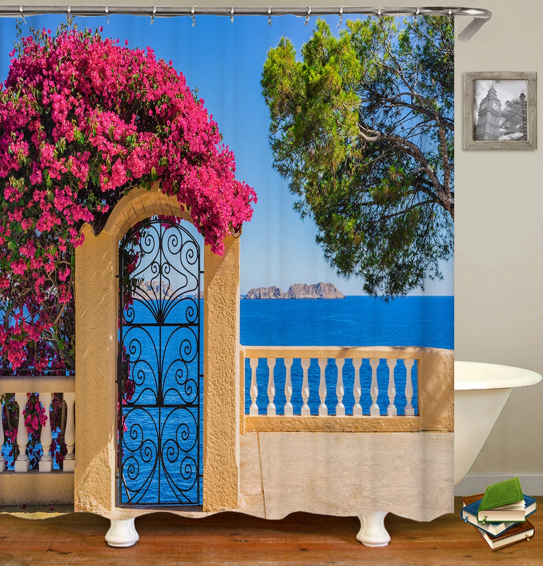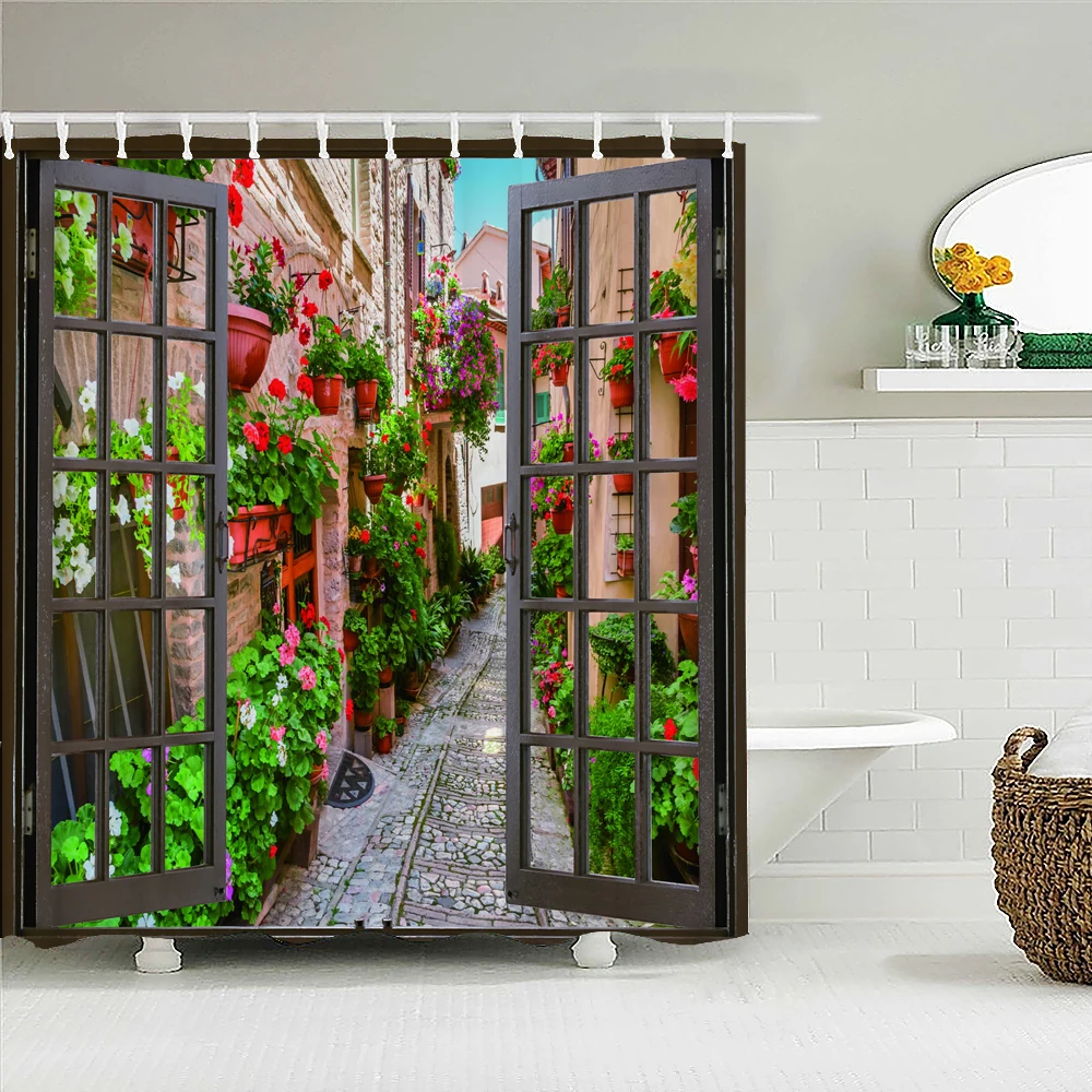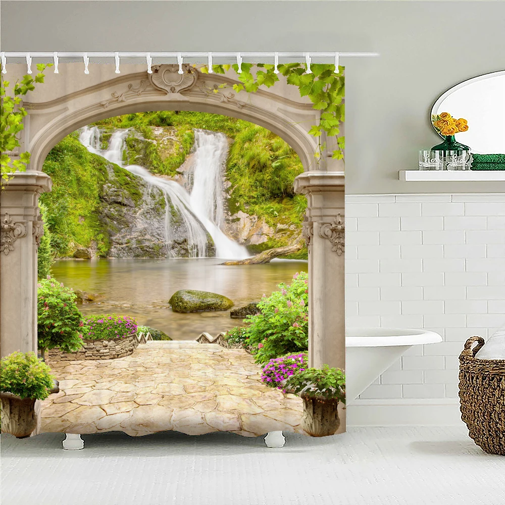 Европейская Ландшафтная занавеска для душа, водонепроницаемая Фотоштора из полиэстера, занавеска для ванной с 3d принтом, с крючками, экран для ванной