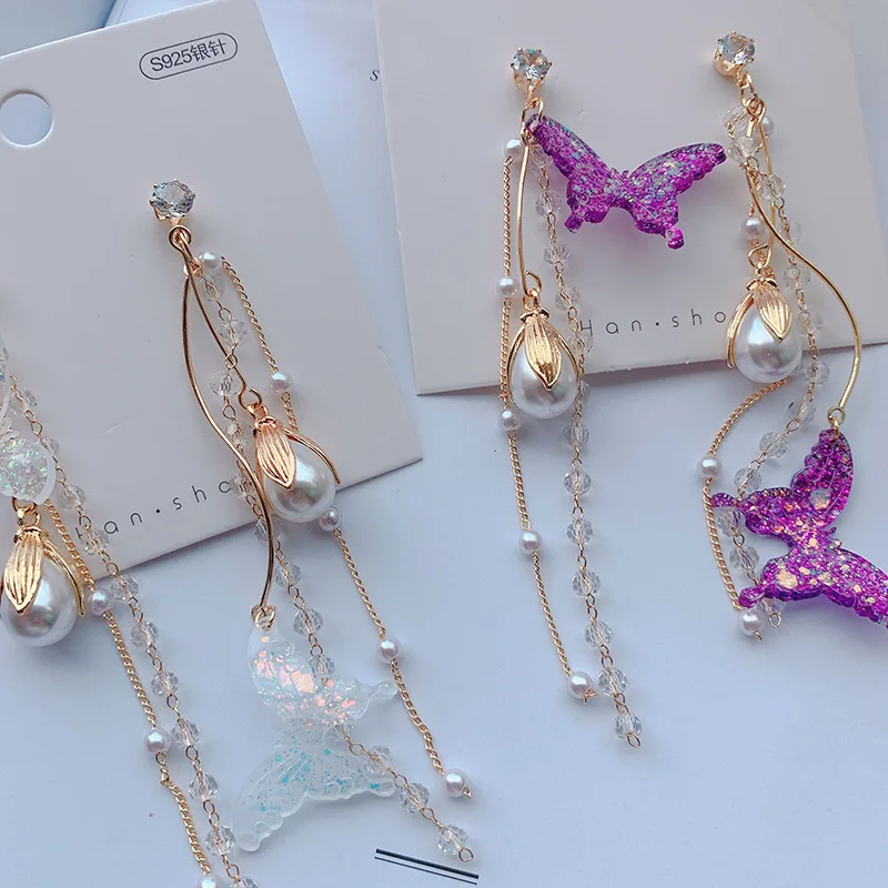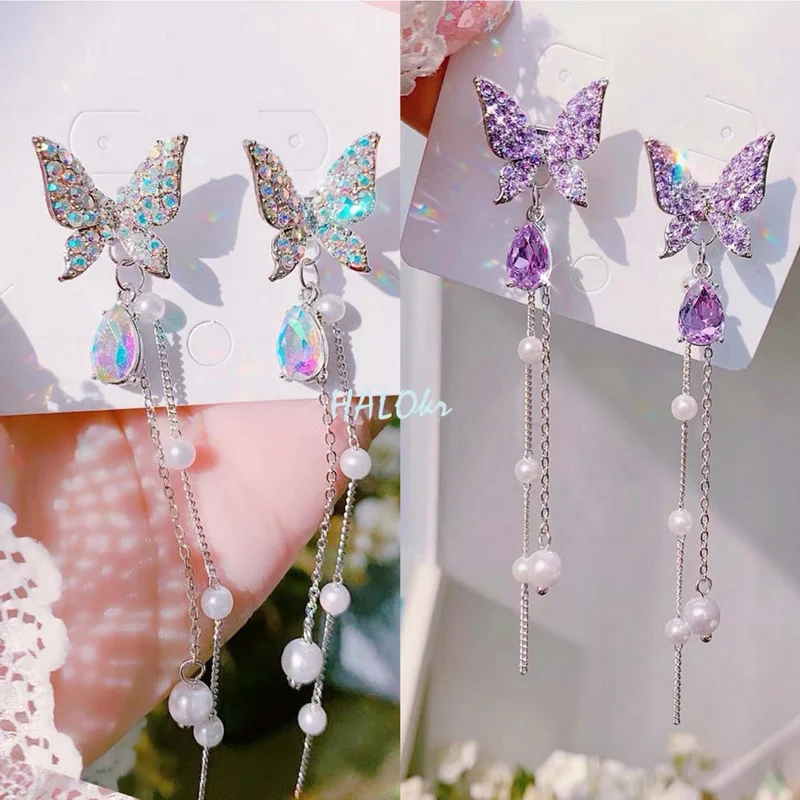 Серьги-бабочки женские, полные стразы, корейский стиль, вечерние