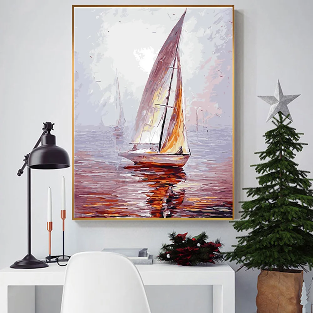 Картина AZQSD по номерам, наборы для самостоятельной раскраски акриловыми красками, Раскрашивание по номерам, пейзаж, рисование на холсте, ручная роспись, подарочное искусство