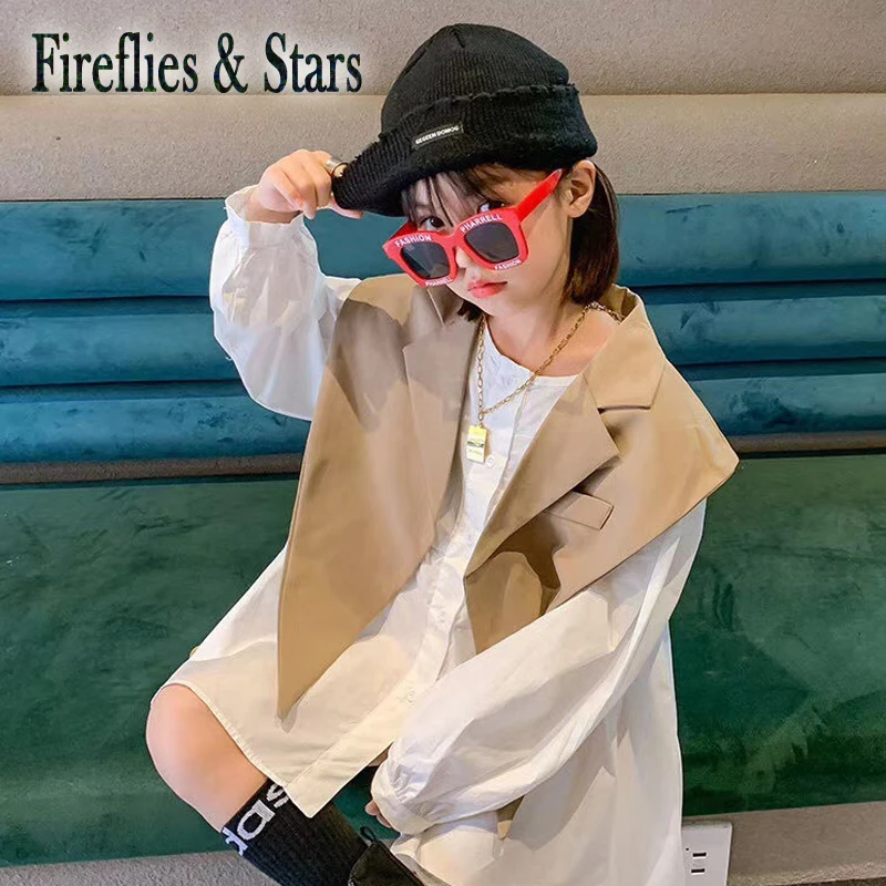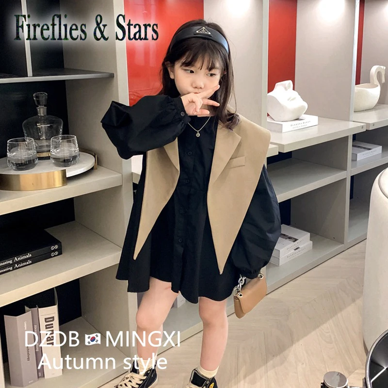Демисезонный комплект из 2 предметов для девочек, детское платье + накидка, детские костюмы, модная однотонная уличная одежда, хаки, шаль с заостренным воротником, от 4 до 10 лет