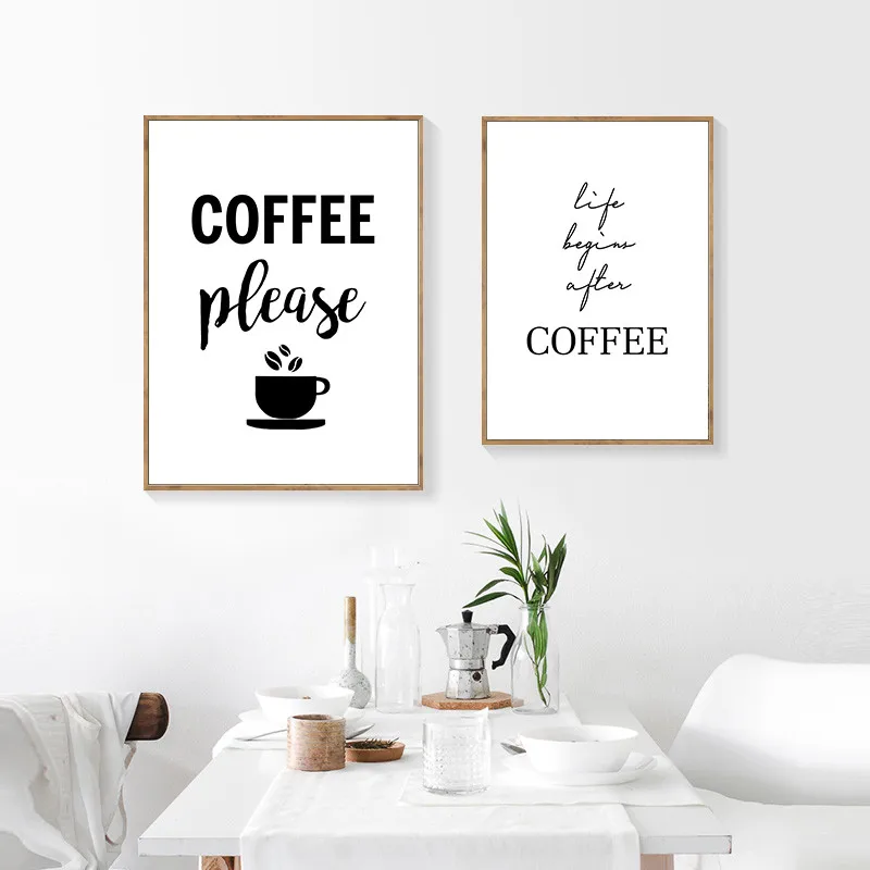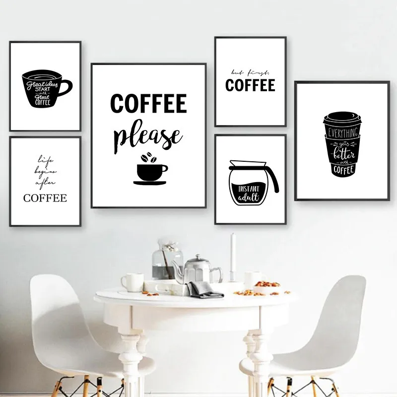 Черно-белый на стену с изображением чашечки кофе Художественная живопись постер, но первый кофе Цитата печать стены художественная картина для столовой домашний декор YX201